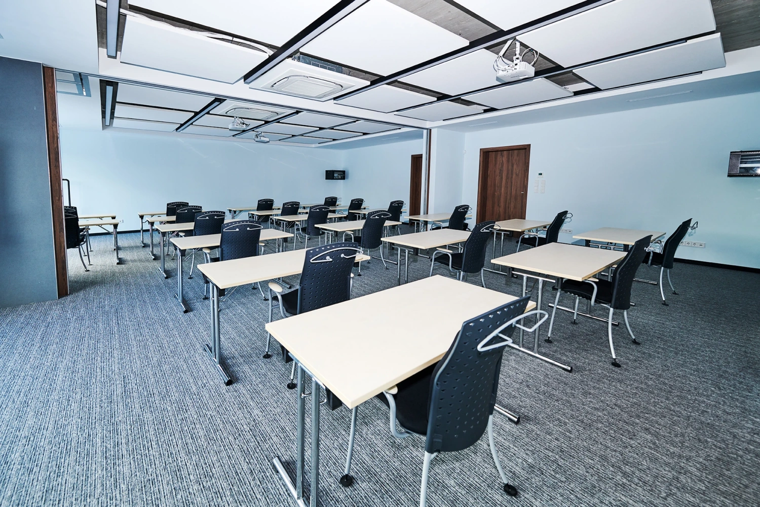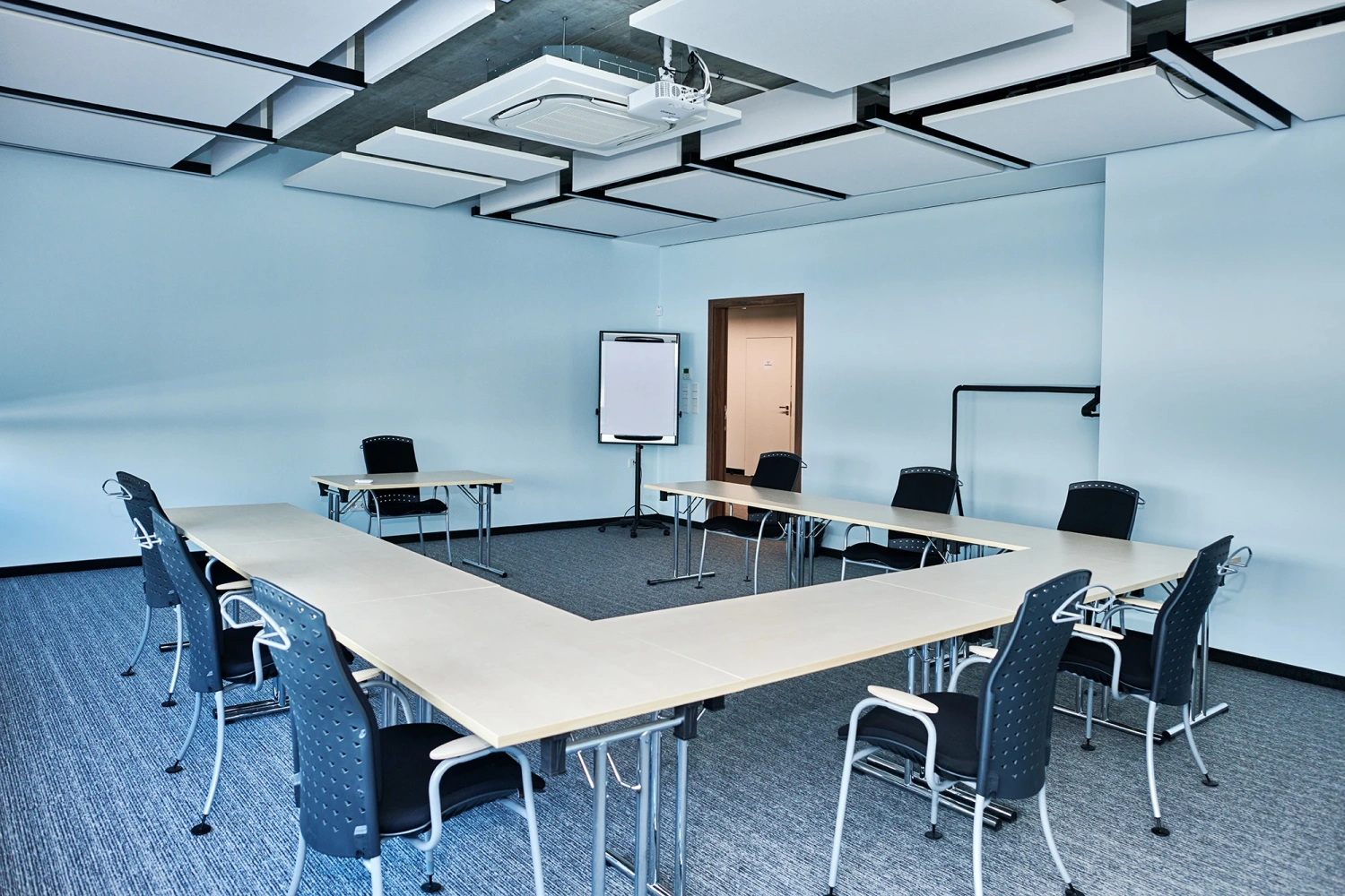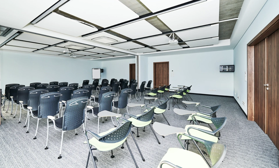 Pomieszczenia wyposażone są w nowoczesny system klimatyzacji oraz sterowane elektrycznie rolety, co pozwala łatwo dostosować warunki do potrzeb prelegentów i słuchaczy. Do dyspozycji organizatorów pozostają również projektory laserowe oraz zintegrowane nagłośnienie, dzięki którym prezentacje są czytelne i dobrze słyszalne w całej sali.