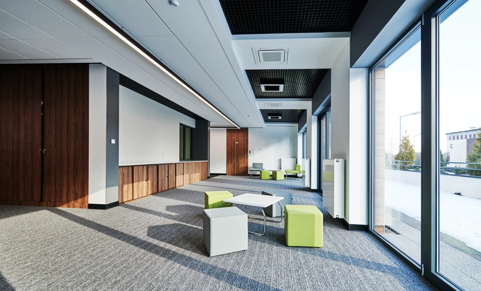 Obiekt oferuje przyjazne i funkcjonalne przestrzenie wspólne, w których można odpocząć w przerwach między zajęciami, a także zaplecze techniczne gwarantujące sprawny przebieg szkoleń i konferencji.