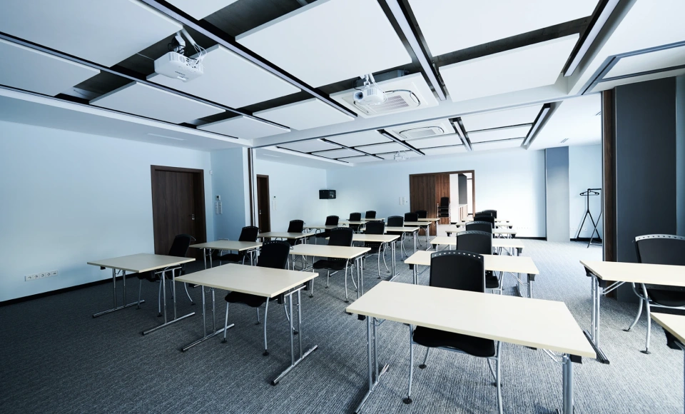 DAGMA Szkolenia IT dysponuje ośmioma salami konferencyjnymi, które można łączyć w większe przestrzenie. W największej konfiguracji obiekt jest w stanie pomieścić do 80 osób, co sprawia, że idealnie nadaje się na średniej wielkości konferencje, warsztaty czy spotkania biznesowe.