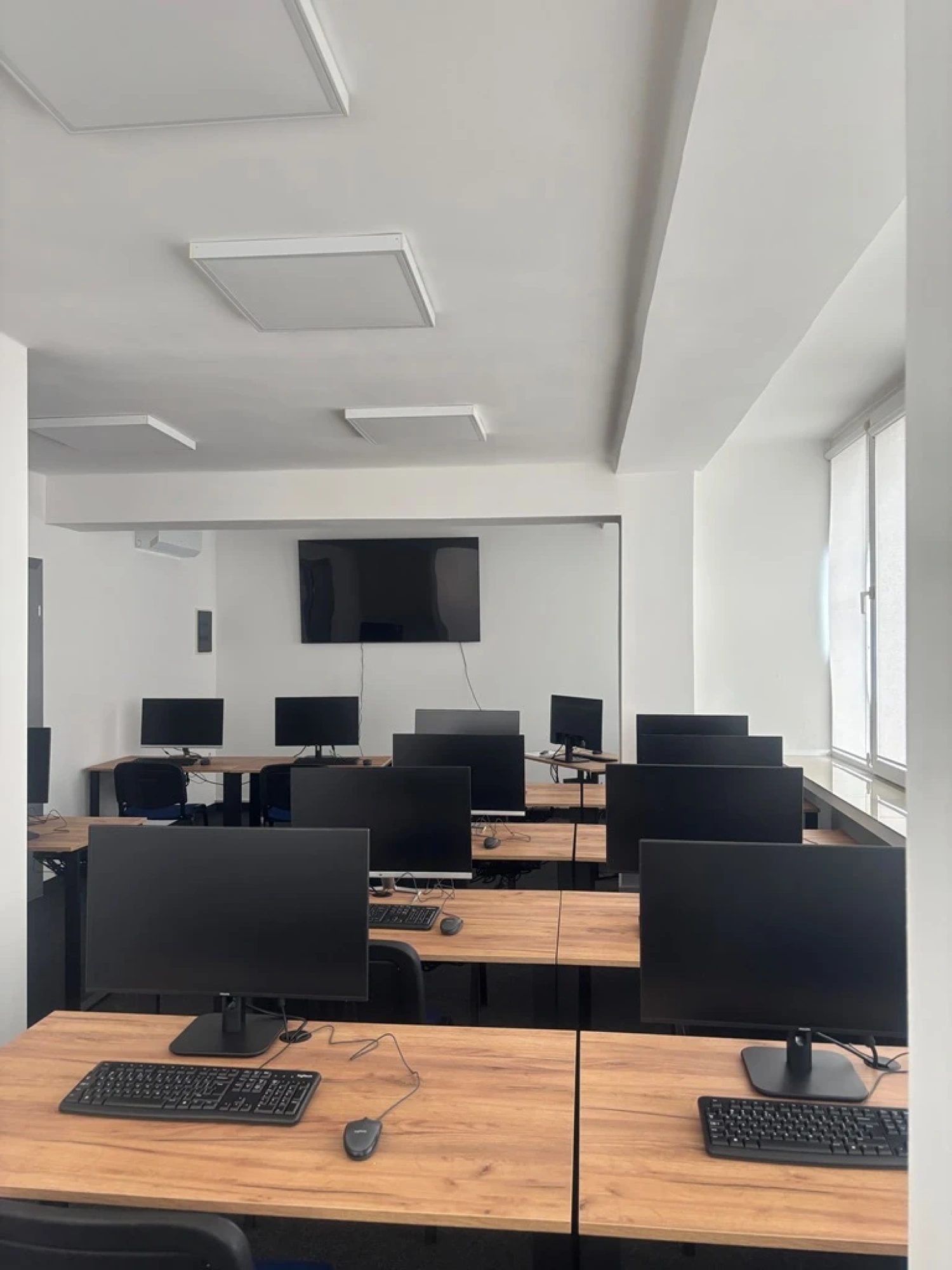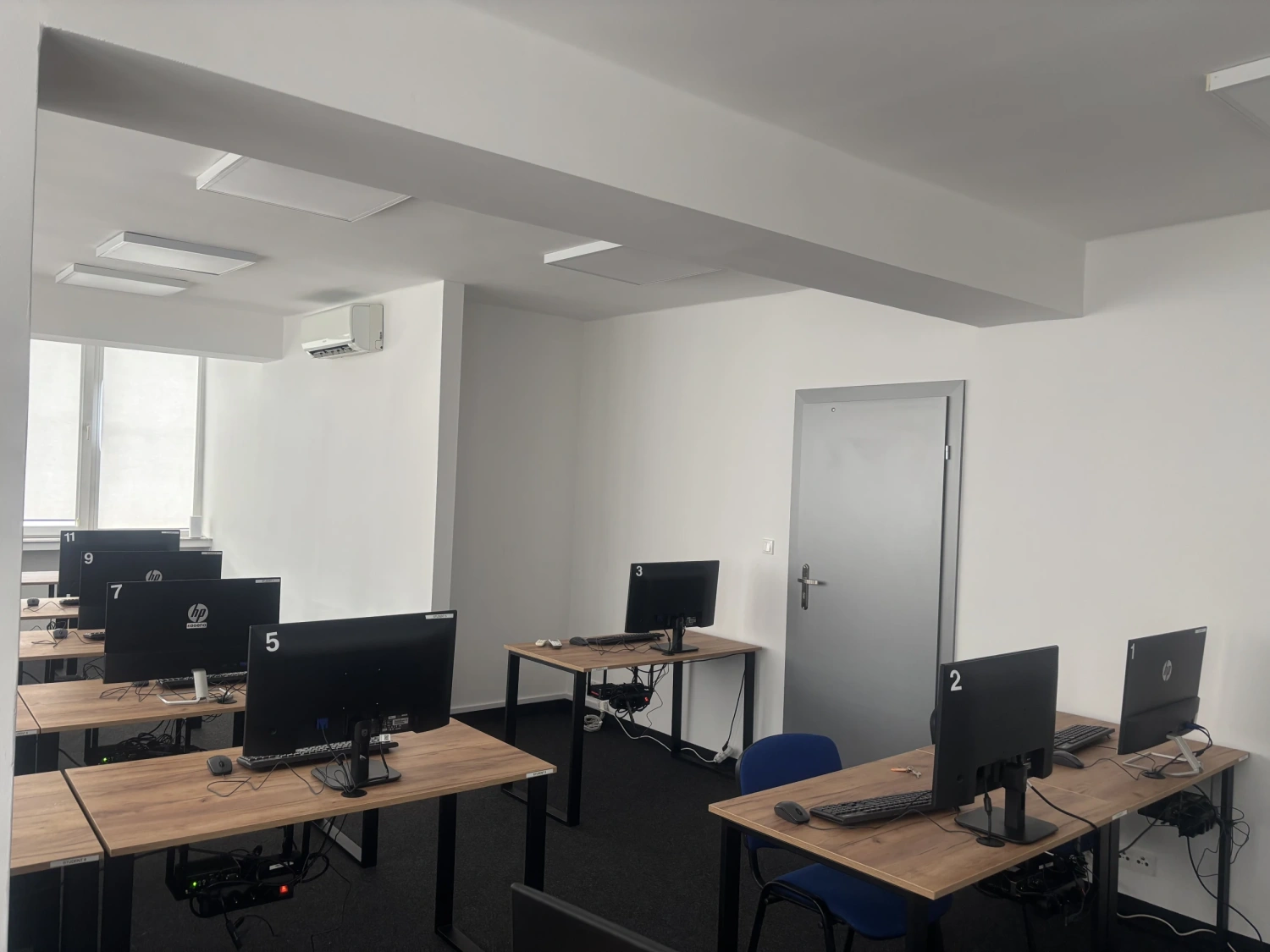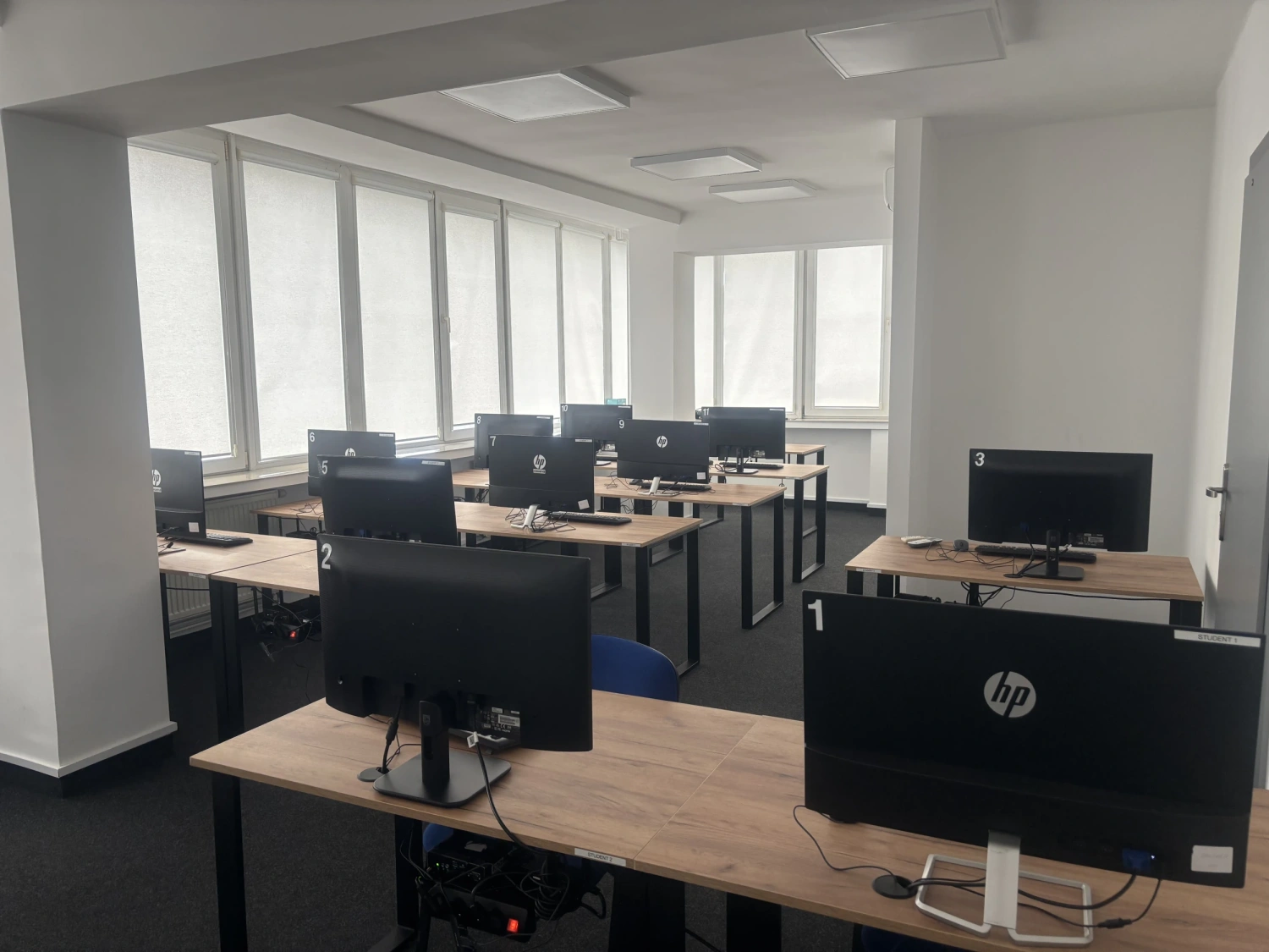 12 stanowisk komputerowych + stanowisko trenera, szybkie WIFI