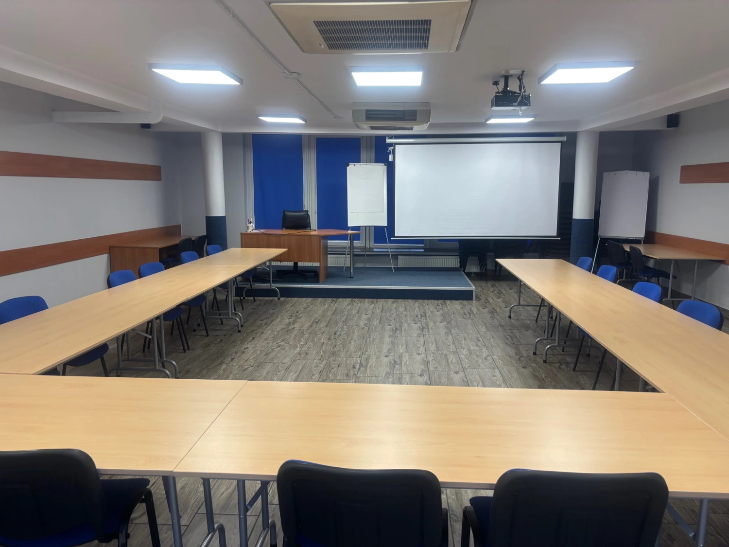 SALA NIEBIESKA - klimatyzowana sala szkoleniowa. Powierzchnia 90m2