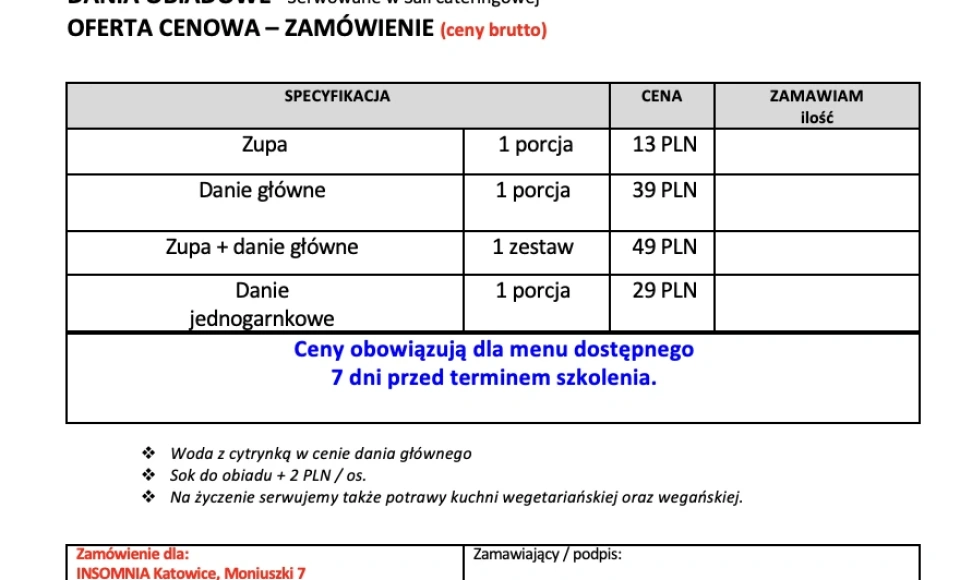 Kawiarnia i Sala Cateringowa "INSOMNIA". Wyłączna obsługa gastronomiczna szkoleń w Centrum biurowo-szkoleniowym MONIUSZKI 7