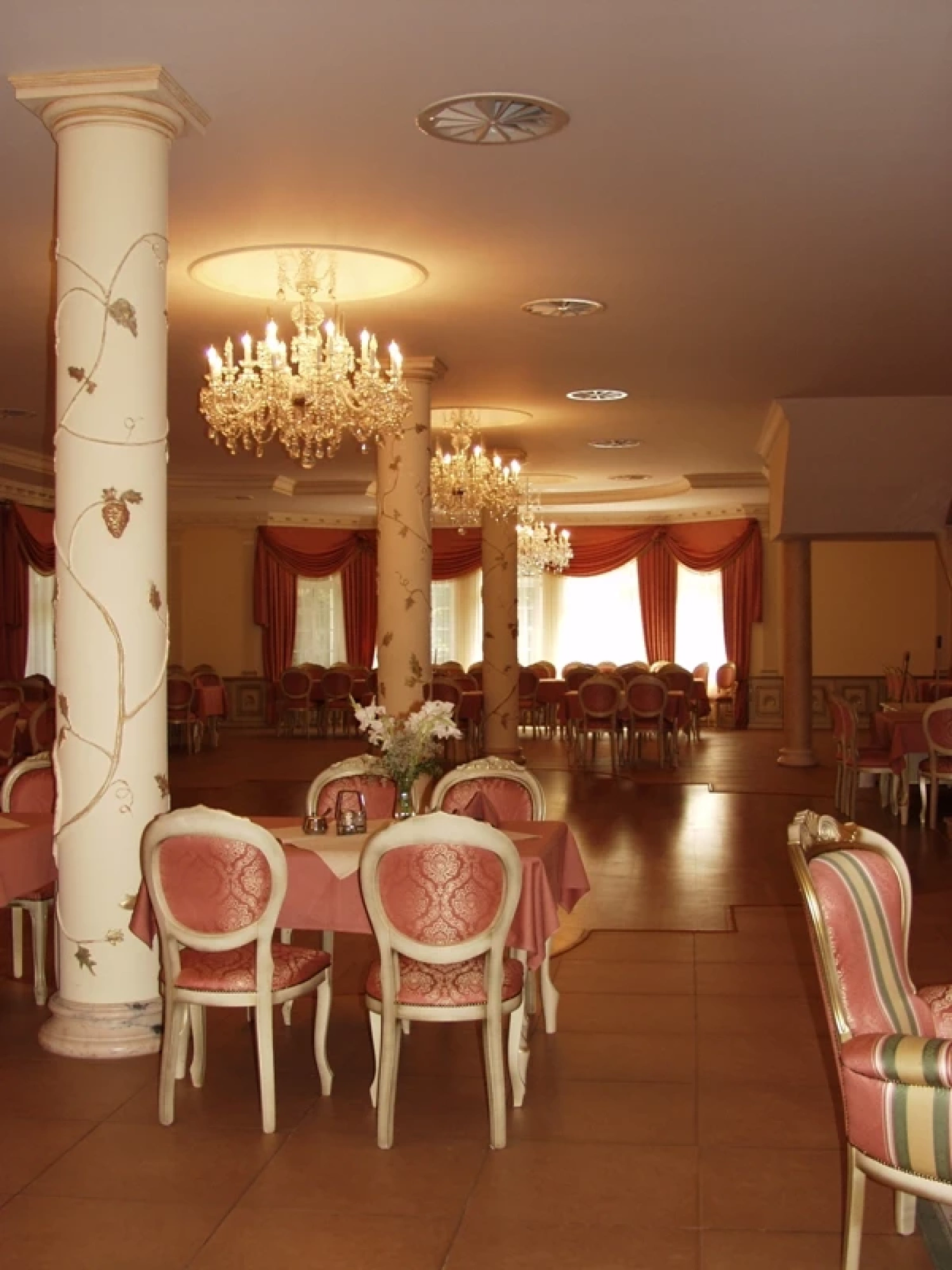 Do dyspozycji gości oddajemy 3 sale restauracyjne, patio oraz drink bar. W okresie letnim czynny jest również ogródek letni, bedący w stanie pomieścić nawet 600 osób. To, co wyróżnia nasz hotel i każe naszym gościom stale do nas wracać, to oryginalna i smaczna kuchnia serwująca dania kuchni staropolskiej, włoskiej i śródziemnomorskiej, stylowo urządzone wnętrza, jak i obsługa hotelu, która zadba by Państwa pobyt u nas stał się zalążkiem dalszem współpracy.