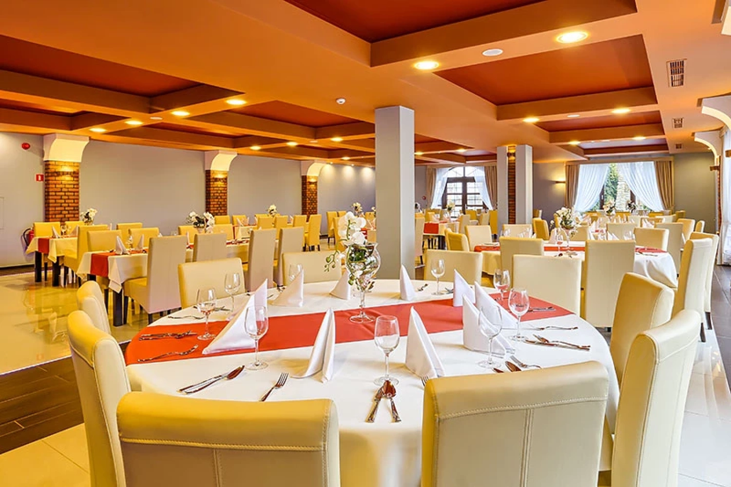 Do dyspozycji gości jest Duża Sala Konferencyjna, mieszcząca w sobie 200 osób. Istnieje możliwość podzielnia jej na dwa mniejsze pomieszczenia. Mała Sala to doskonałe miejsce na konferencje do 50 osób, a niewielka Sala Kominkowa sprawdzi się jako miejsce na kameralne negocjacje czy spotkania zarządu.