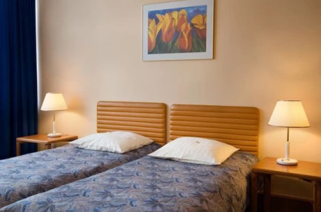 Wygodne pokoje 1 i 2-osobowe są wyposażone w telefon, SAT-TV, łazienkę z prysznicem i WC. Pokoje dwuosobowe można połączyć wewnętrznymi drzwiami w tzw. studio. Hotel posiada również pokoje przystosowane do potrzeb osób niepełnosprawnych. Osobom palącym oferujemy pokoje na IV piętrze, w pozostałej części obowiązuje zakaz palenia.