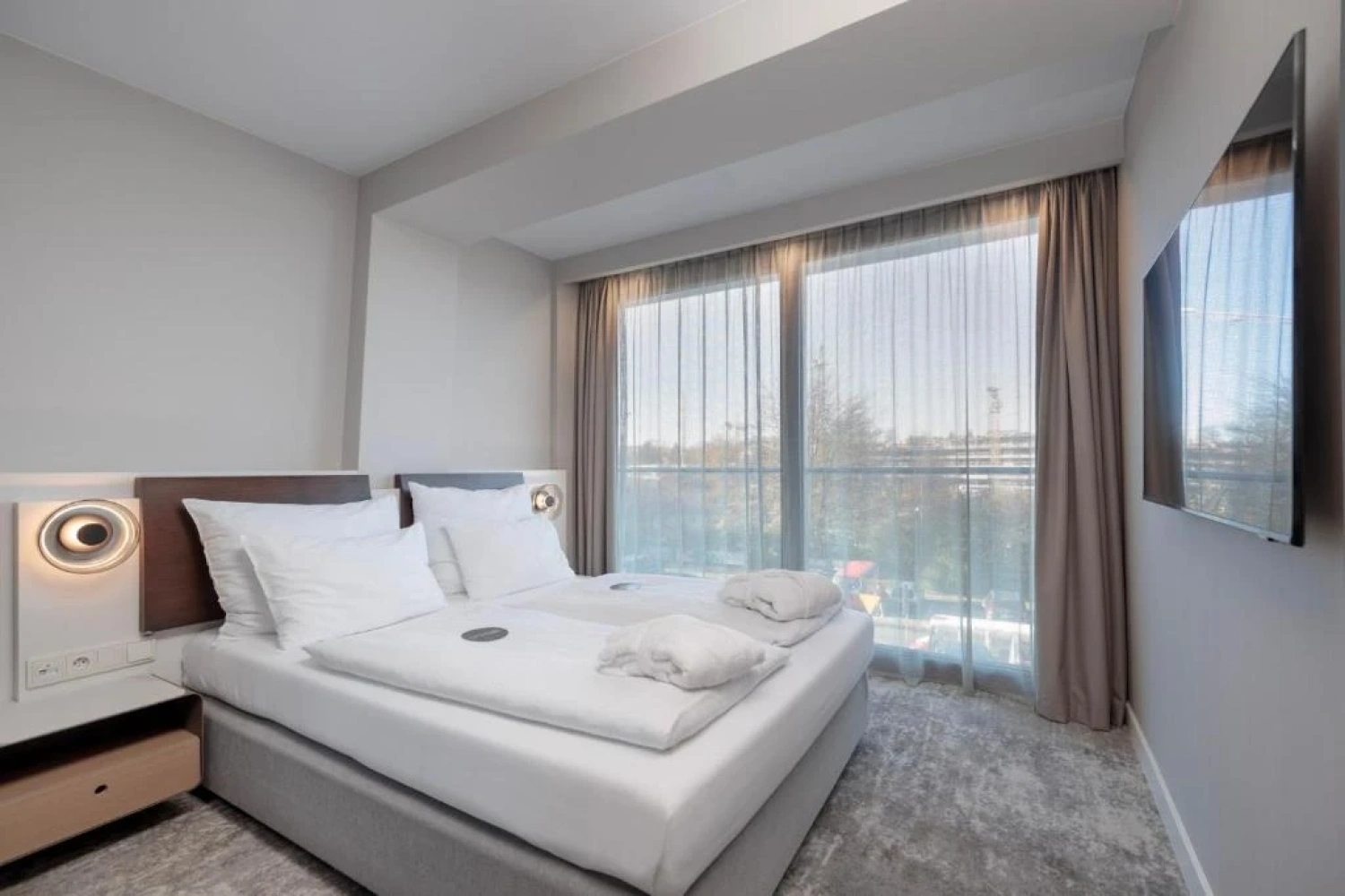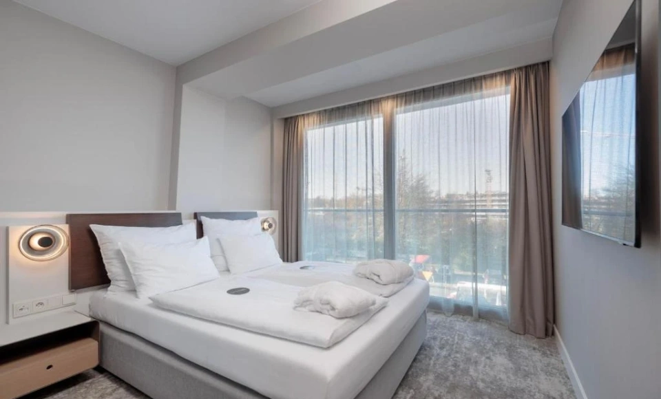 Obiekt dysponuje 277 nowoczesnymi apartamentami w standardach Standard, Lux, Exclusive oraz Superior. Część pokoi posiada taras z widokiem na Bałtyk. Każdy apartament wyposażony jest w komfortowe łóżka, klimatyzację, funkcjonalne miejsce do pracy, przestronną łazienkę oraz bezpłatny dostęp do Internetu, co czyni hotel idealnym miejscem zarówno na rodzinny wypoczynek, jak i pobyt biznesowy.