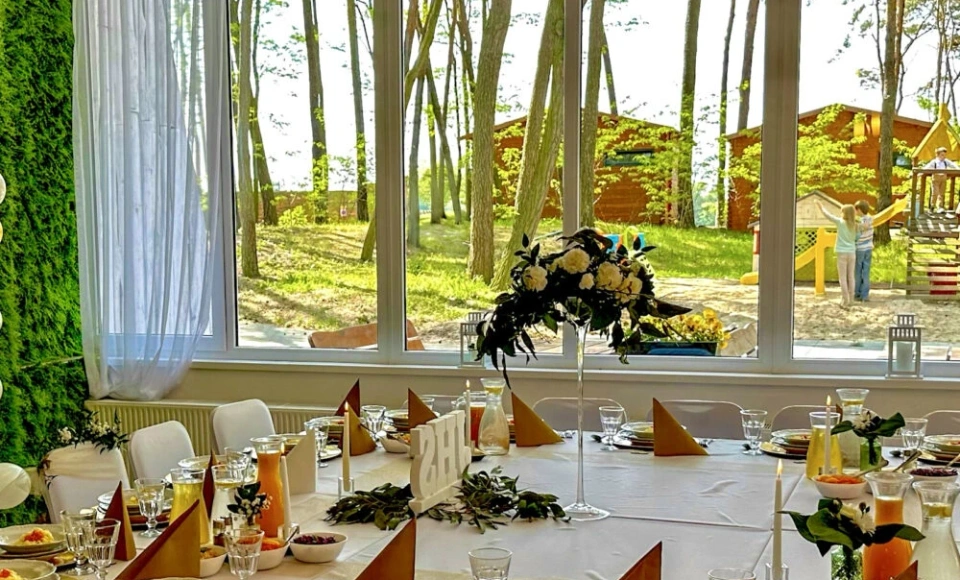Na terenie ośrodka znajduje się restauracja Leśny Ogród, serwująca dania kuchni polskiej i międzynarodowej, oraz Beach Bar, idealny na relaks z widokiem na jezioro. Obiekt oferuje także catering na specjalne okazje.