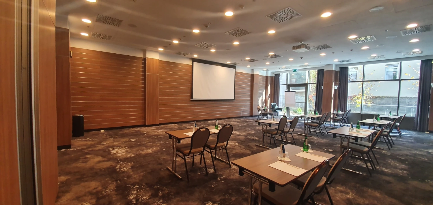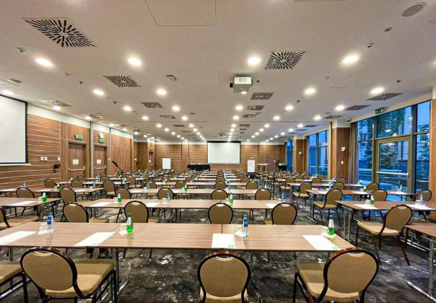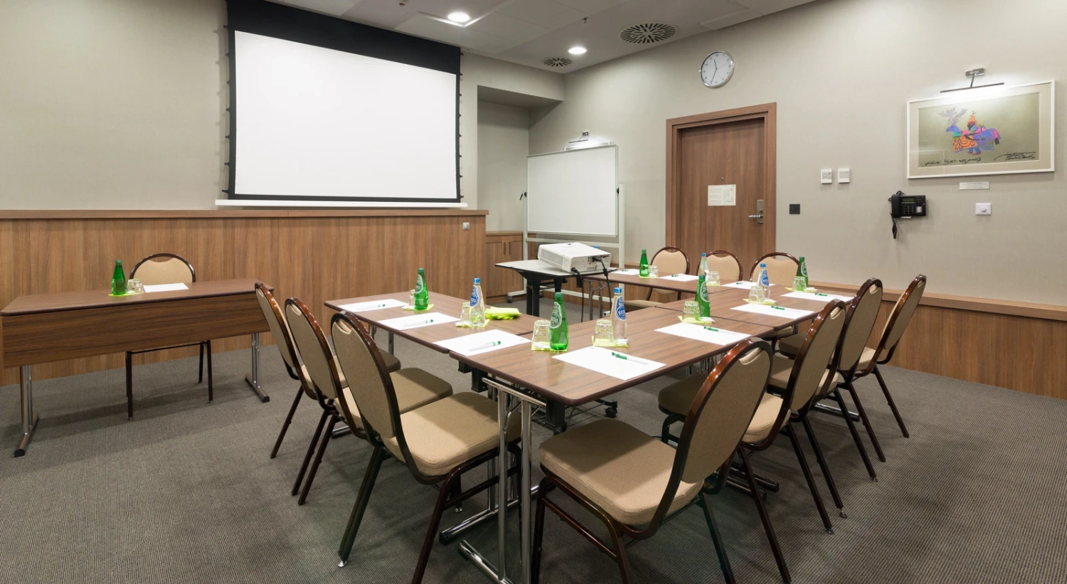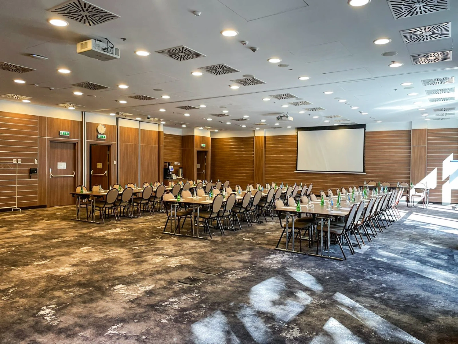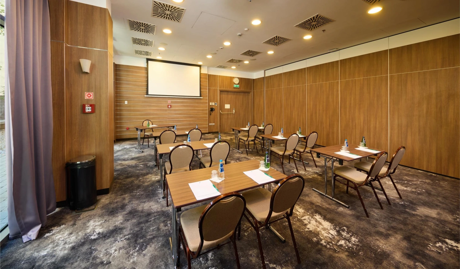 Sale konferencyjne w Holiday Inn Krakow City Centre są wyposażone w rozwijany ekran do projektora, profesjonalne nagłośnienie oraz artykuły stacjonarne, takie jak notatniki, długopisy i woda mineralna 0,3 l dla każdego uczestnika. Dodatkowo goście mają dostęp do bezpłatnego bezprzewodowego Internetu, co zapewnia komfort i funkcjonalność podczas każdego wydarzenia.