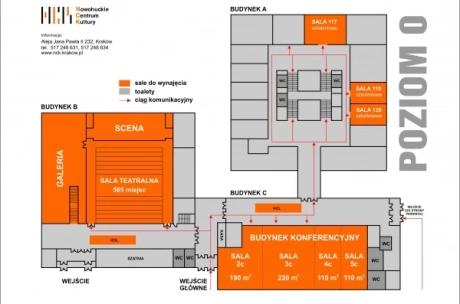 Nowohuckiego Centrum Kultury w pobliżu węzła komunikacyjnego gwarantuje szybki i łatwy dojazd z każdego miejsca w Krakowie.