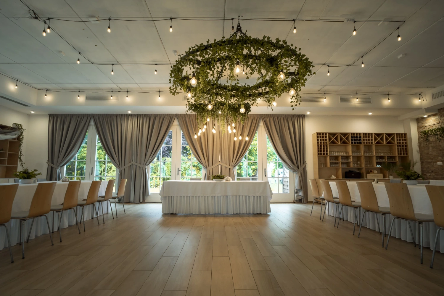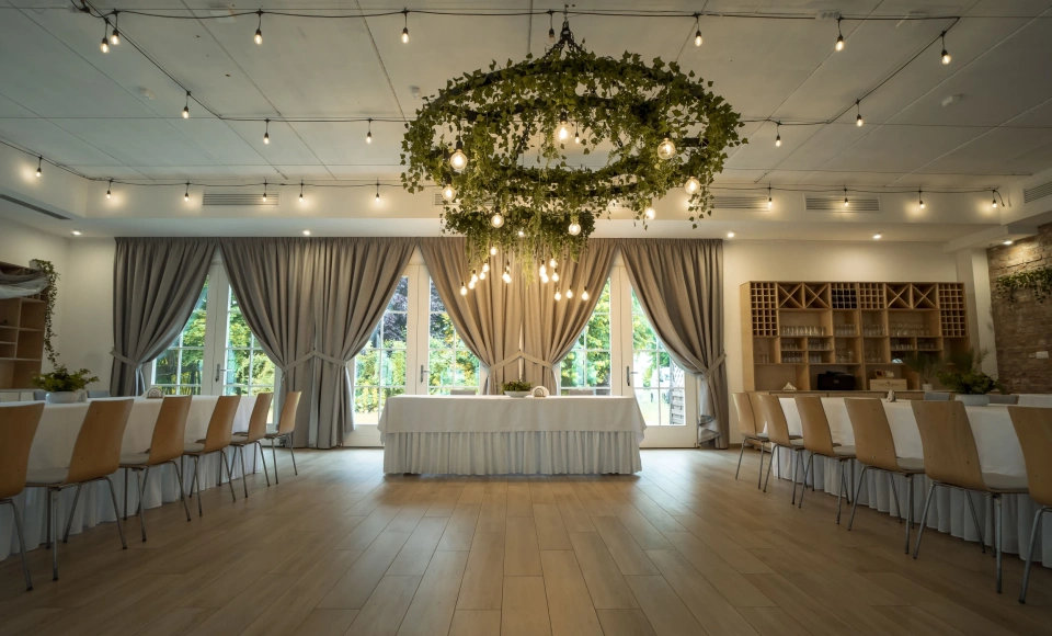 Do dyspozycji organizatorów oddane są trzy różnorodne sale, każda o odmiennym stylu i możliwościach aranżacyjnych. Sala bankietowa, przestronna i pełna elegancji, doskonale sprawdza się podczas uroczystych przyjęć. Jej wystrój uzupełnia widok otaczającej zieleni, a przylegające patio stwarza dodatkowe miejsce do tańca lub spotkań w plenerowej scenerii.