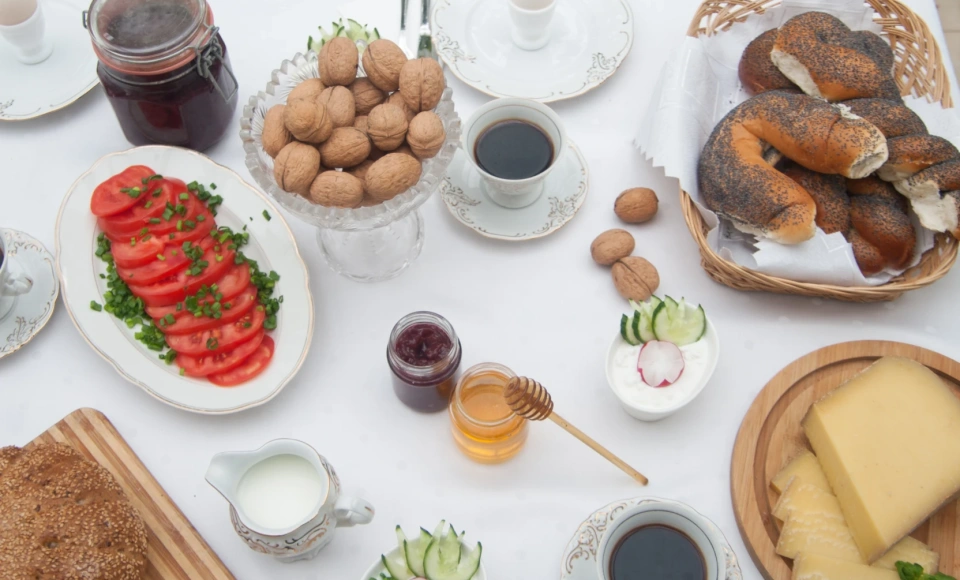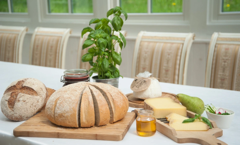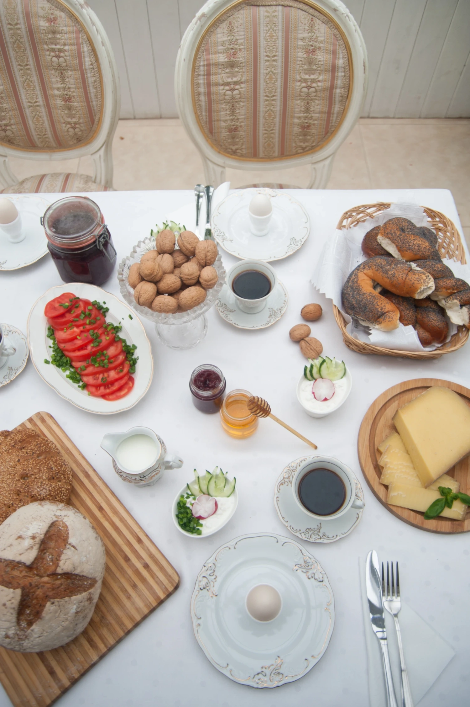 Śniadania podawane o poranku oparte są na naturalnych składnikach: jajkach z wolnego wybiegu, świeżych warzywach, serach wytwarzanych na miejscu czy wędlinach z własnej wędzarni. Urozmaicają je domowe wypieki, pachnące chałki i lekkie desery w słoiczkach, które dodają energii na cały dzień.