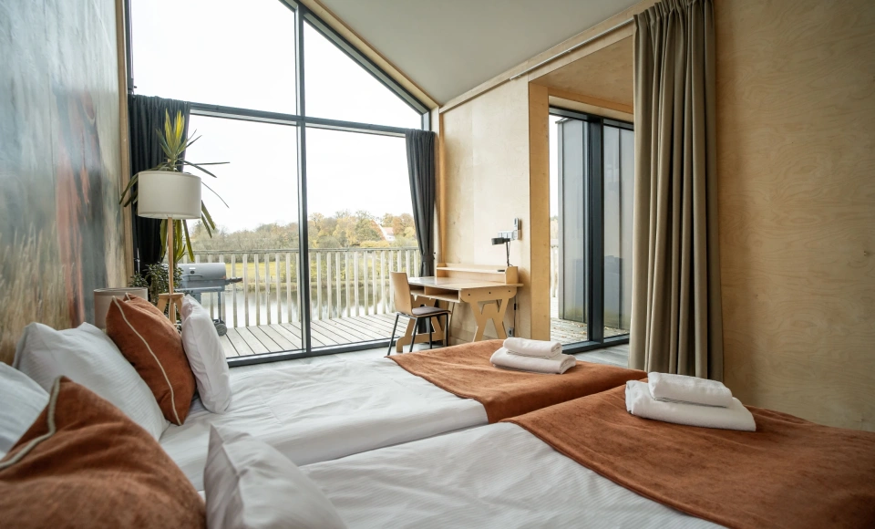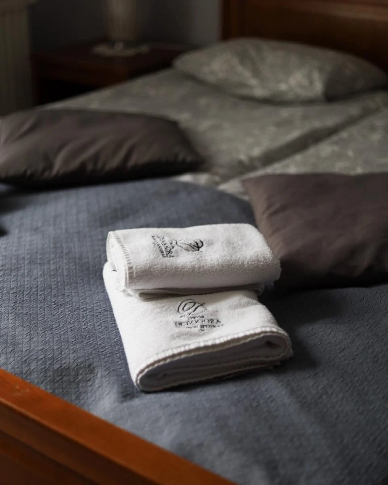 Niezależnie od wybranej formy noclegu, każdy pokój i domek wyposażony jest w obszerne, wygodne łóżka z wysokiej jakości pościelą, zapewniające zdrowy i regenerujący sen.