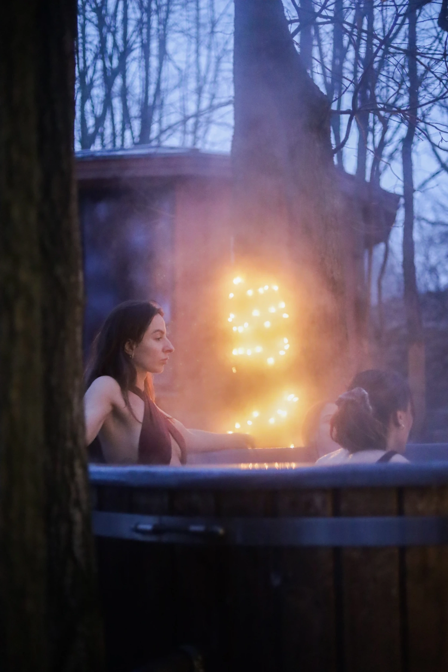 Po aktywnym dniu czeka strefa relaksu - odprężająca kąpiel w balii pod rozgwieżdżonym niebem lub chwile regeneracji w saunie, które pozwalają odzyskać energię i w pełni poczuć atmosferę spokoju, z jakiej słynie Dębogóra.