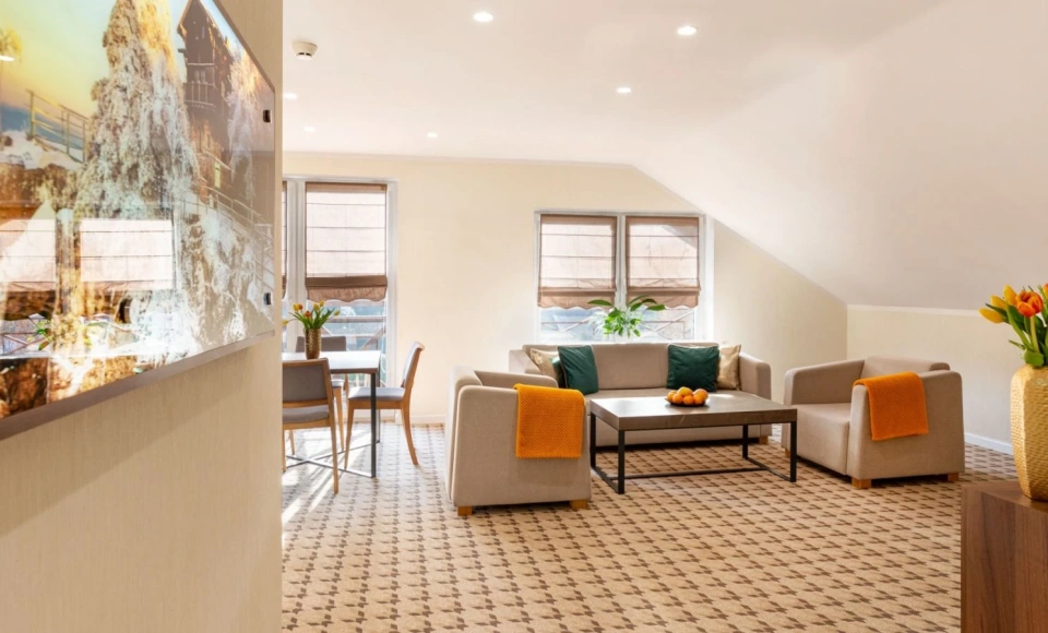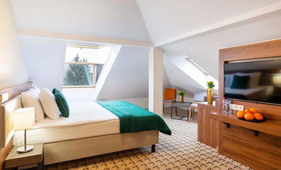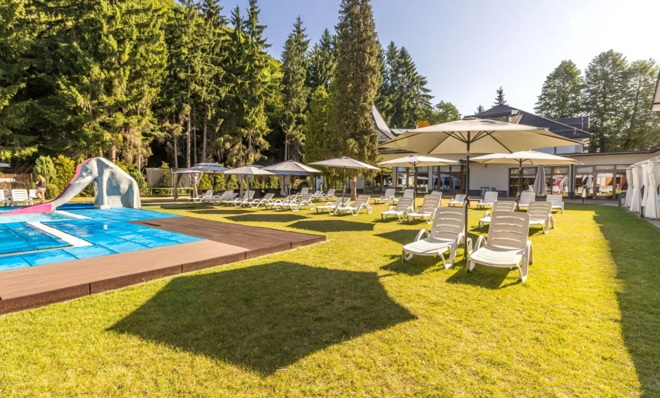 W cenę pobytu wliczona jest możliwość korzystania z Parku Wodnego "Zielona wySPA" - dwa baseny, zjeżdzalnia wodna, kompleks saun, jacuzzi, sala fitness, sala gier, sala kinowa oraz pokój zabaw dla dzieci "małpi gaj".