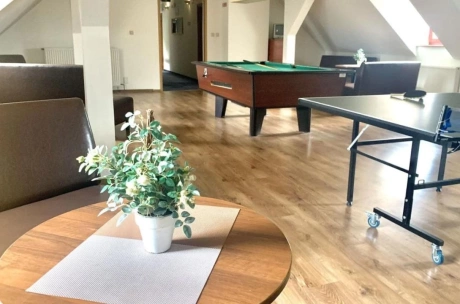 Pokoje, w których nocowaliśmy przytulne, podstawowo wyposażone, w sumie niczego więcej od nich nie oczekiwaliśmy, bowiem służyły one nam wyłącznie do przenocowania i odświeżenia. Przy wyborze tego miejsca bardziej skupiliśmy na zapoznaniu się z ofertą sal, ich wyglądem, funkcjonalnością i wyposażeniem. Istnieje tutaj możliwość dowolnej aranżacji, pomieszczenia są klimatyzowane i dobrze oświetlone. Wynajęliśmy salę, która znajduje się na pierwszym piętrze, wnętrze bardzo ładne, do tego solidne i stylowe meble oraz multimedialne udogodnienia. To był dobry wybór ;)