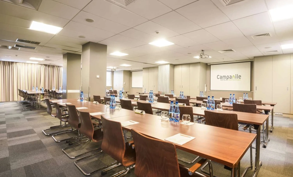 Hotel Campanile Łódź oferuje trzy klimatyzowane sale konferencyjno-bankietowe o łącznej powierzchni 171 metrów kwadratowych, idealne do organizacji różnego rodzaju spotkań zarówno biznesowych, jak i prywatnych.