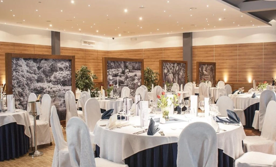 Na miłośników słodkości czekają wyszukane desery. Elegancka i przestronna przestrzeń umożliwia obsługę gości przy stołach prostokątnych, jak i okrągłych. Może pomieścić nawet 200 uczestników przyjąć, bankietów i jubileuszy.