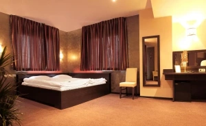pokoje duokomfort – pokoje dwuosobowe o podwyższonym standardzie z barkiem, łazienką wyposażoną w dwuosobową wannę oraz kącik wypoczynkowy.
