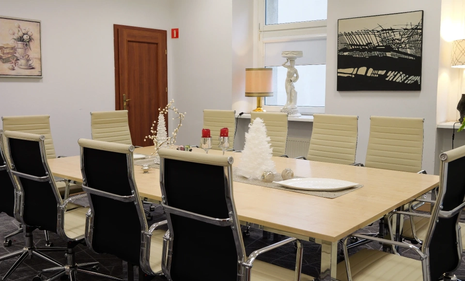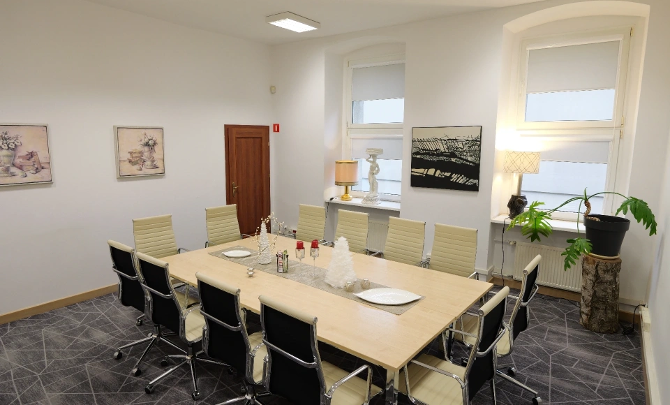 Sala konferencyjna Nawrot 12 to miejsce, które wyróżnia się kameralnym charakterem, elastycznością i eleganckim wykończeniem, tworząc idealne tło dla efektywnych spotkań biznesowych.