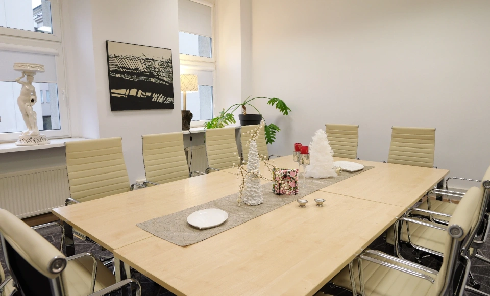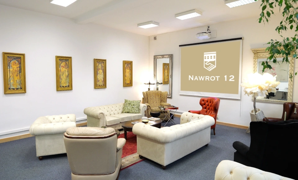 Sala konferencyjna Nawrot 12 to kameralna przestrzeń stworzona z myślą o spotkaniach biznesowych w małym gronie. Łączy w sobie elegancję, funkcjonalność i nowoczesne technologie, oferując komfortowe warunki do pracy, dyskusji i prezentacji. Wnętrze zostało zaprojektowane tak, aby sprzyjało skupieniu i profesjonalnej współpracy, zachowując jednocześnie przyjazną, nieformalną atmosferę.