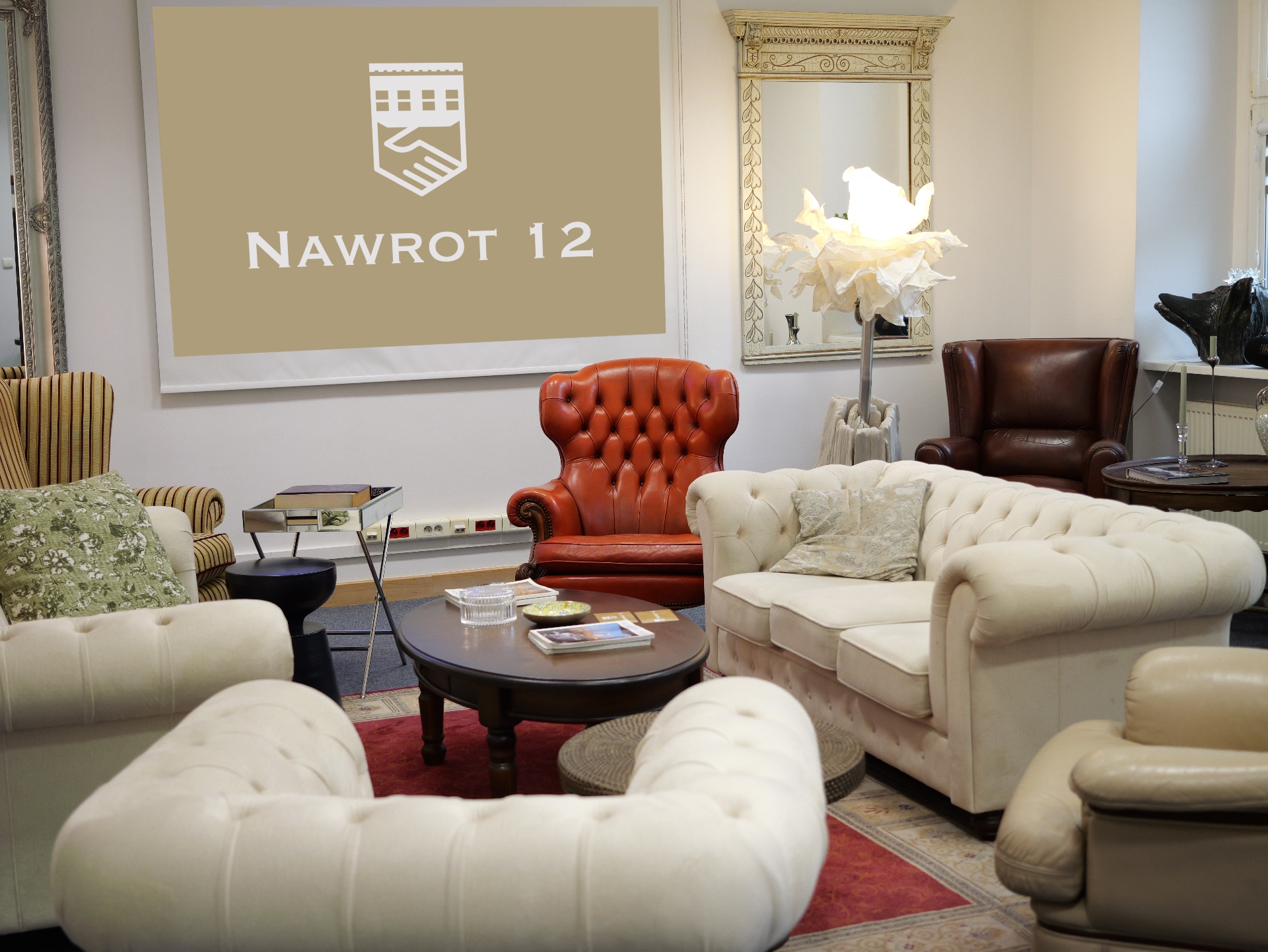 Nawrot 12 oferuje nie tylko elegancką i funkcjonalną przestrzeń biznesową, ale także w pełni wyposażoną kuchnię oraz przytulną strefę relaksu. Kuchnia została zaprojektowana tak, aby zapewnić komfort zarówno podczas przerw kawowych, jak i pełnych posiłków - znajduje się w niej nowoczesne wyposażenie, umożliwiające przygotowanie napojów, przekąsek oraz cateringu dla uczestników wydarzeń. Strefa relaksu to miejsce, w którym można oderwać się od pracy i spotkań, odpocząć w komfortowych fotelach lub przy stolikach w spokojnej, kameralnej atmosferze.