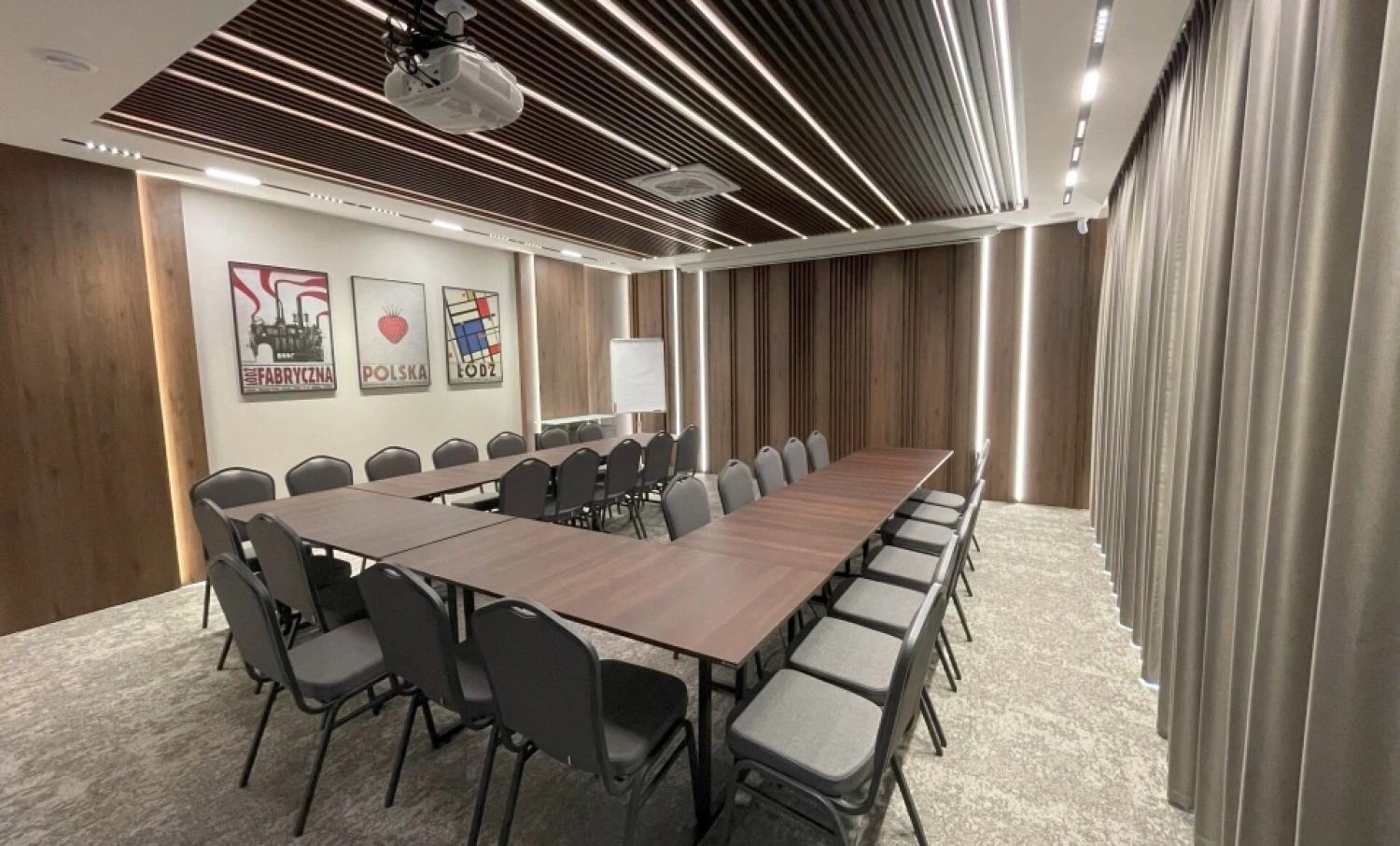 Piotrkowska 89 Residence w Łodzi oferuje nowoczesną i w pełni wyposażoną salę konferencyjną w centrum miasta, która doskonale sprawdzi się podczas szkoleń, spotkań biznesowych, warsztatów oraz konferencji. Sala jest klimatyzowana, wyposażona w szybkie WiFi oraz nowoczesny sprzęt audiowizualny, a jej układ można elastycznie dostosować do potrzeb wydarzenia, co pozwala na komfortową organizację zarówno kameralnych spotkań, jak i większych konferencji.