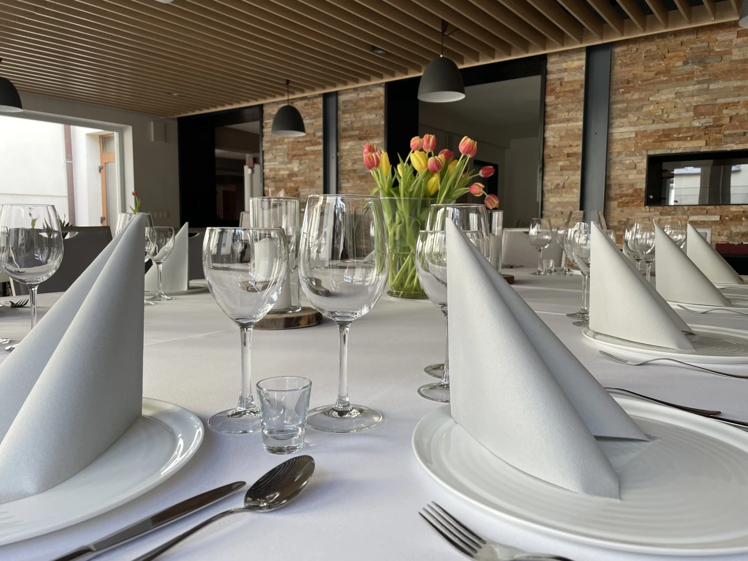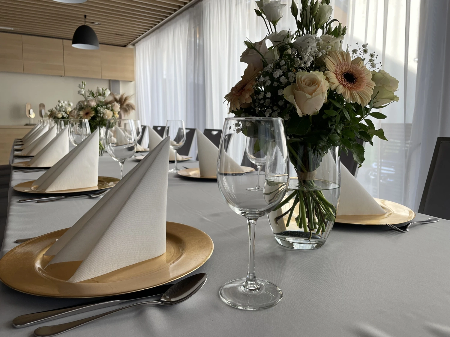 Elastyczna aranżacja stołów, możliwość podziału przestrzeni oraz nowoczesne zaplecze kuchenne gwarantują sprawną i perfekcyjnie zorganizowaną obsługę nawet najbardziej wymagających eventów.