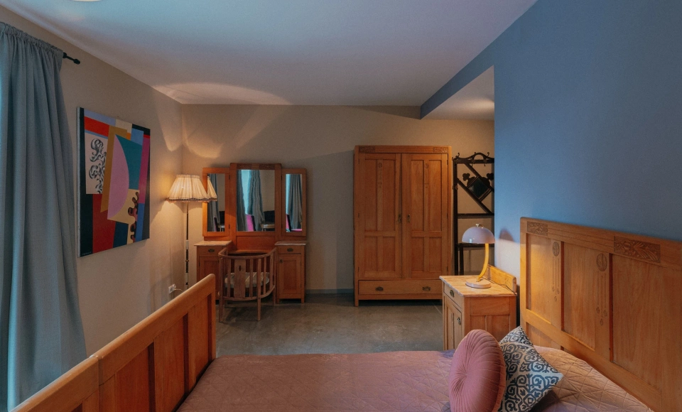 W budynku głównym ArtFolwarku znajduje się osiem indywidualnie zaprojektowanych pokoi. Wnętrza tych przestronnych apartamentów cechują się nowoczesnymi rozwiązaniami, prostymi liniami i minimalistycznym stylem, które harmonijnie współgrają z rustykalnymi akcentami. Wykorzystanie naturalnych materiałów, takich jak drewno czy kamień, w połączeniu z nowoczesnymi udogodnieniami, tworzy atmosferę eleganckiego komfortu.