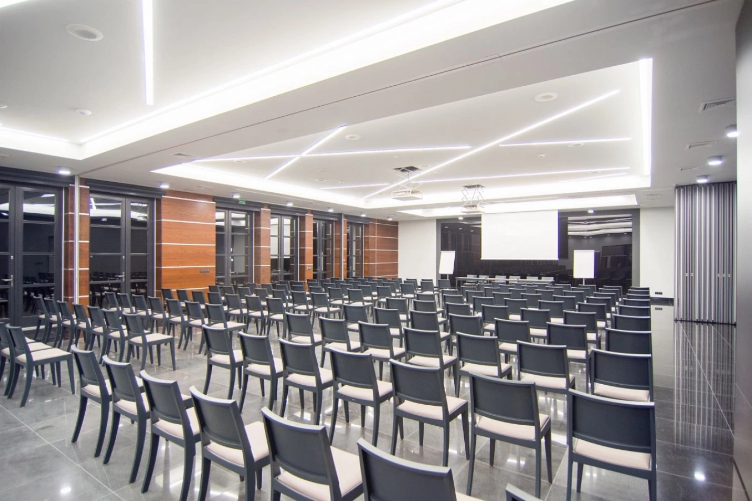 Sale konferencyjne są przestronne i jasne, z dostępem do światła dziennego (z możliwością zaciemnienia). Do dyspozycji organizatorów są 4 sale konferencyjne. Największa z nich swobodnie pomieści do 360 osób w układzie teatralnym.