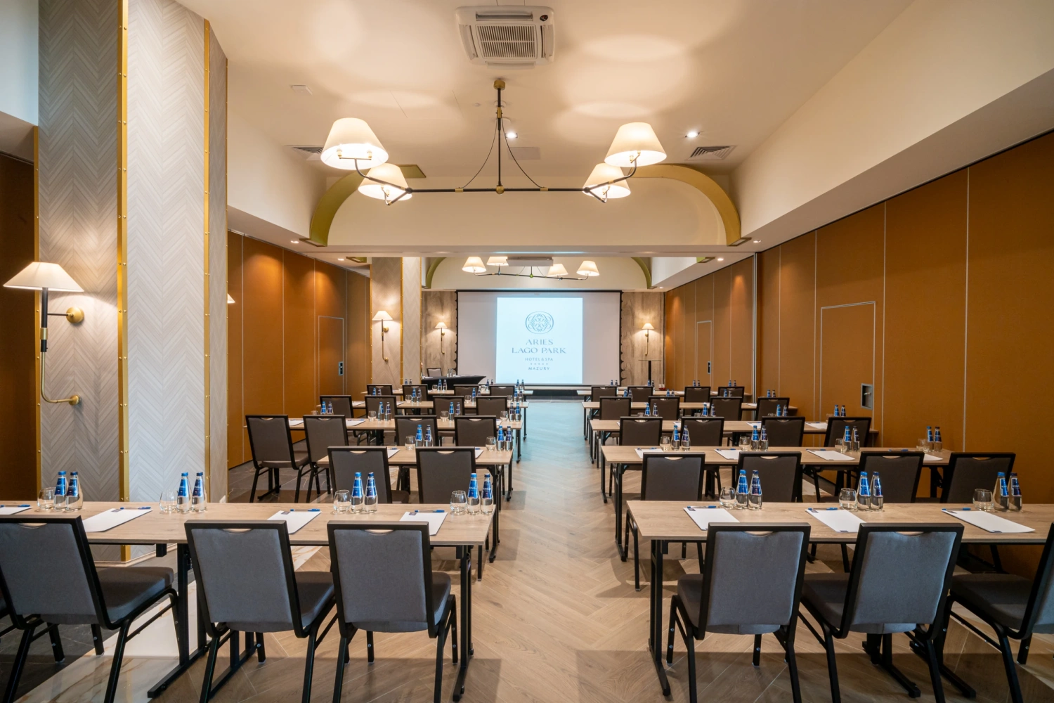 Aries Lago Park Hotel & SPA Mazury dysponuje sześcioma zróżnicowanymi przestrzeniami eventowymi, które można elastycznie dostosować do charakteru i wielkości spotkania. Największa sala konferencyjna, o powierzchni 340 metrów kwadratowych, pomieści nawet 200 osób. Dzięki mobilnym ścianom istnieje możliwość dowolnej aranżacji przestrzeni w zależności od liczby uczestników i rodzaju wydarzenia. Dodatkowo, dostępne są kameralne sale idealne do spotkań VIP, warsztatów tematycznych czy prywatnych negocjacji. Całość wspierana jest profesjonalnym zapleczem technicznym i organizacyjnym.