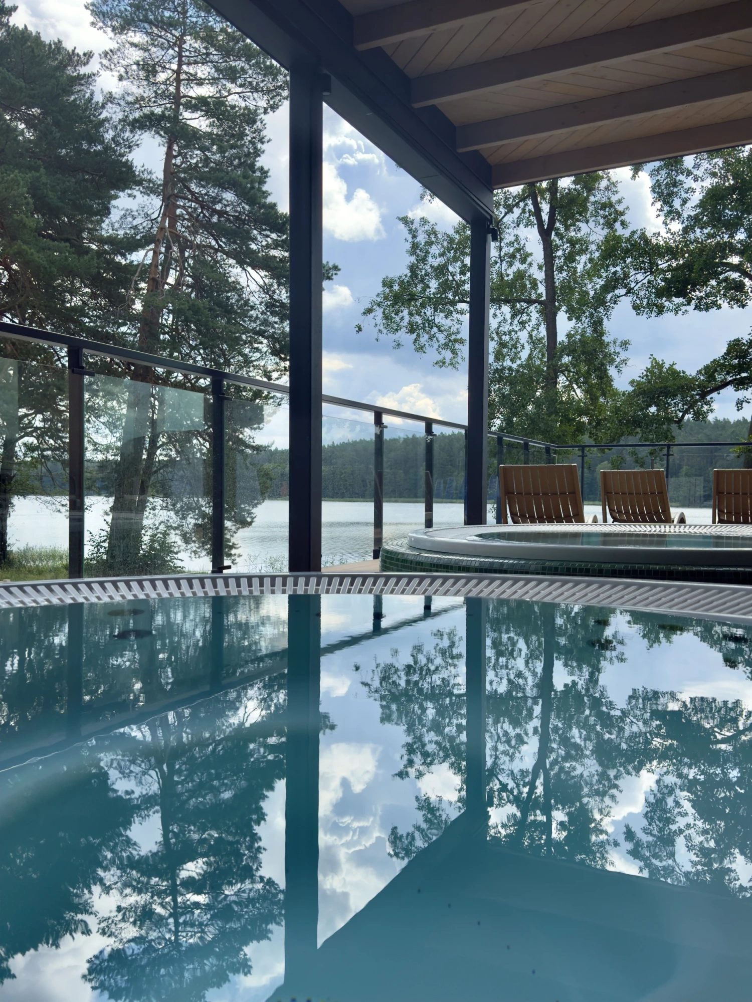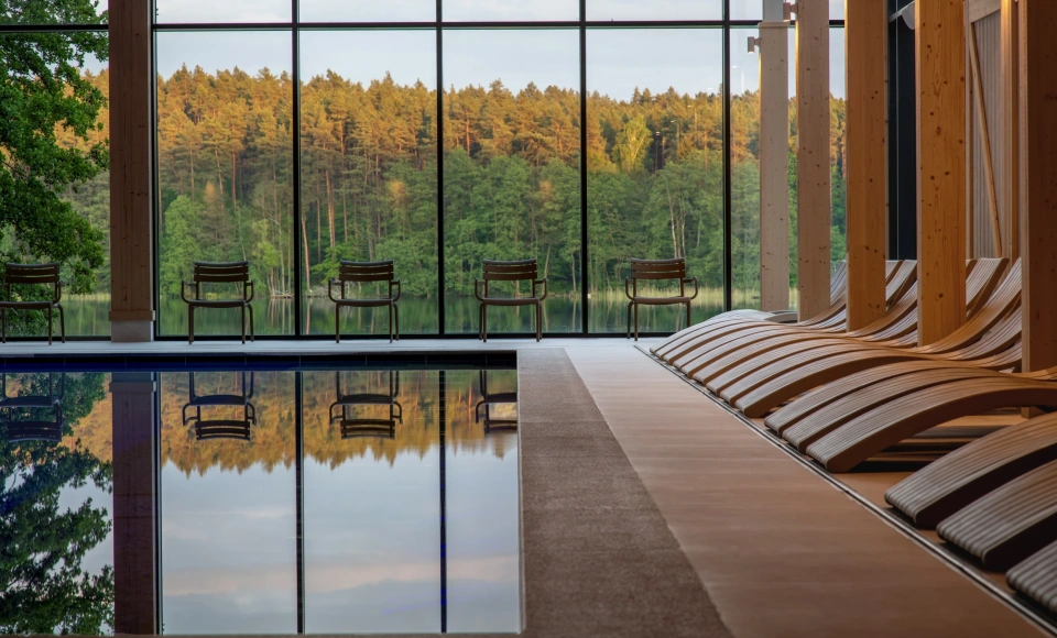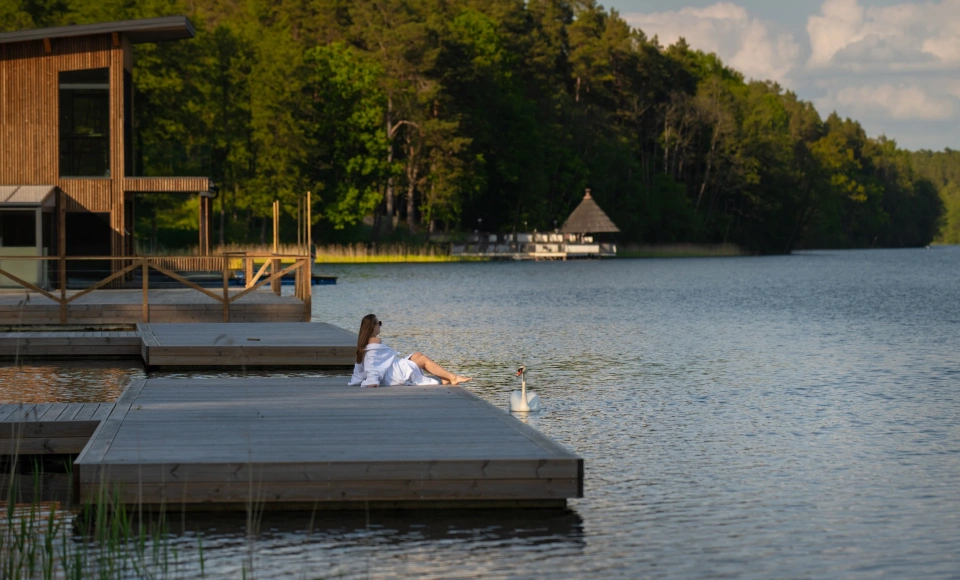Przestronne pokoje z panoramicznymi widokami na jezioro Pluszne i otaczające lasy zachwycają przemyślaną aranżacją. Wykorzystanie naturalnych materiałów, stonowanej kolorystyki oraz dbałość o detale wykończenia tworzą atmosferę sprzyjającą relaksowi i wyciszeniu.