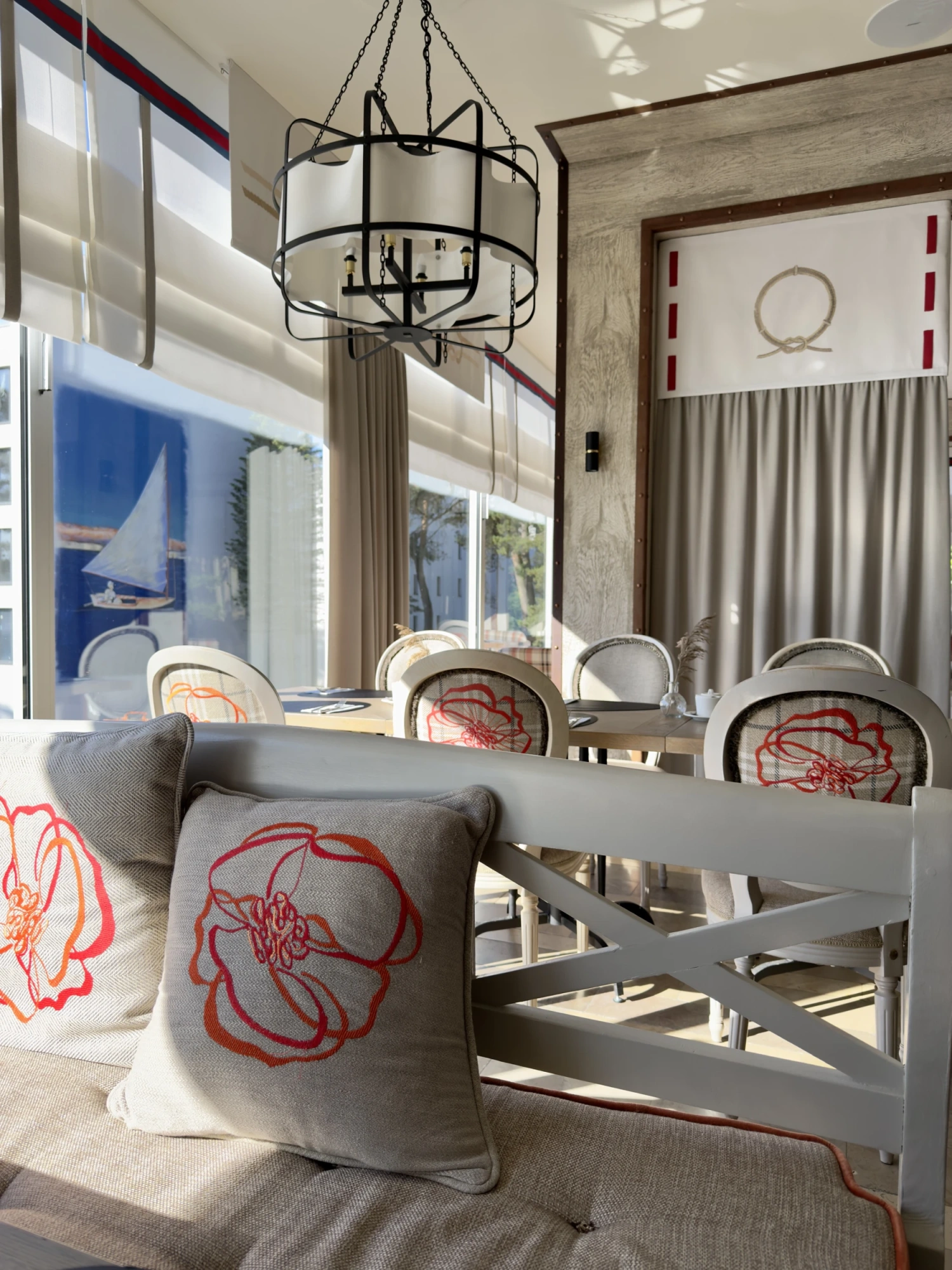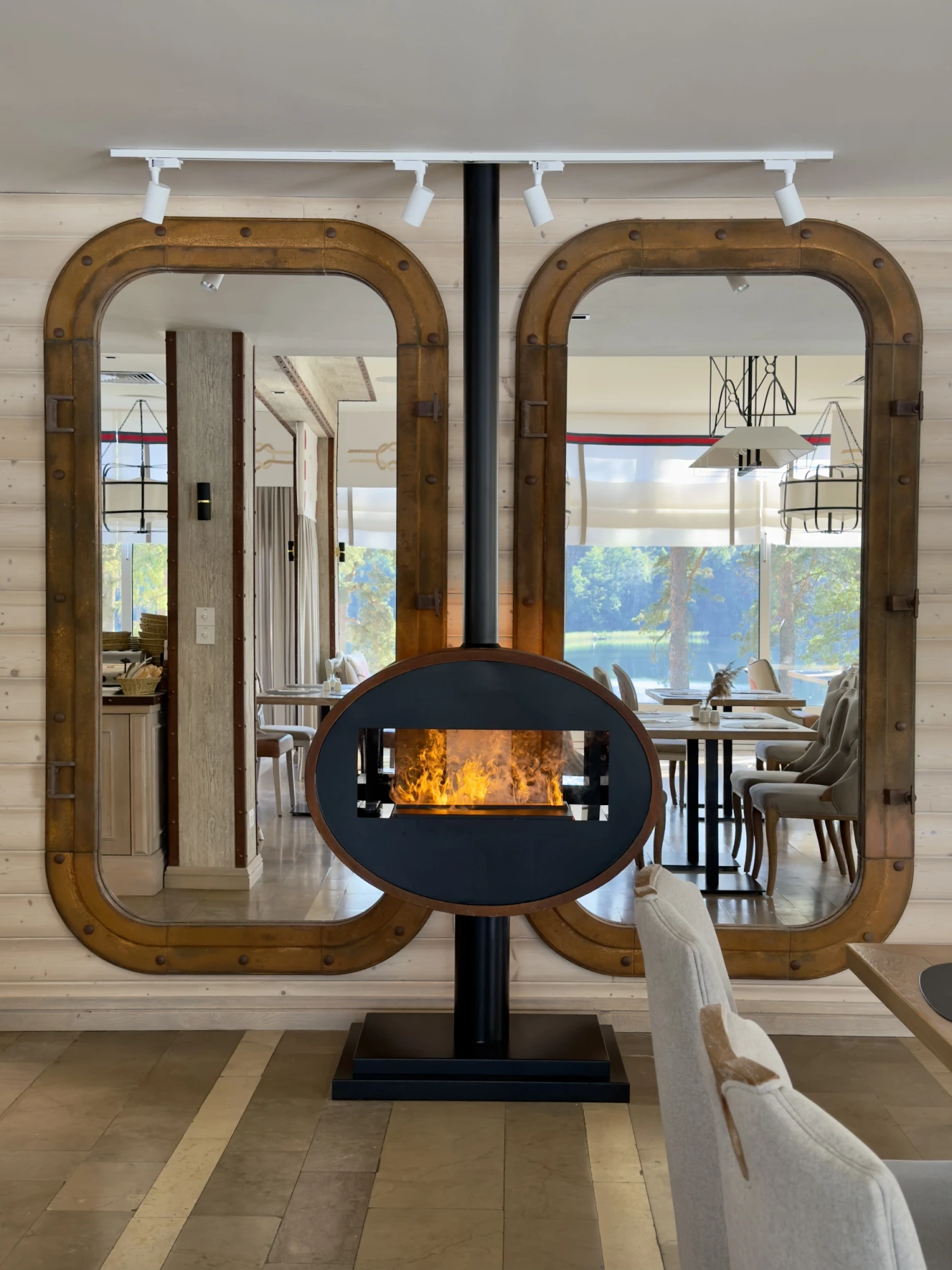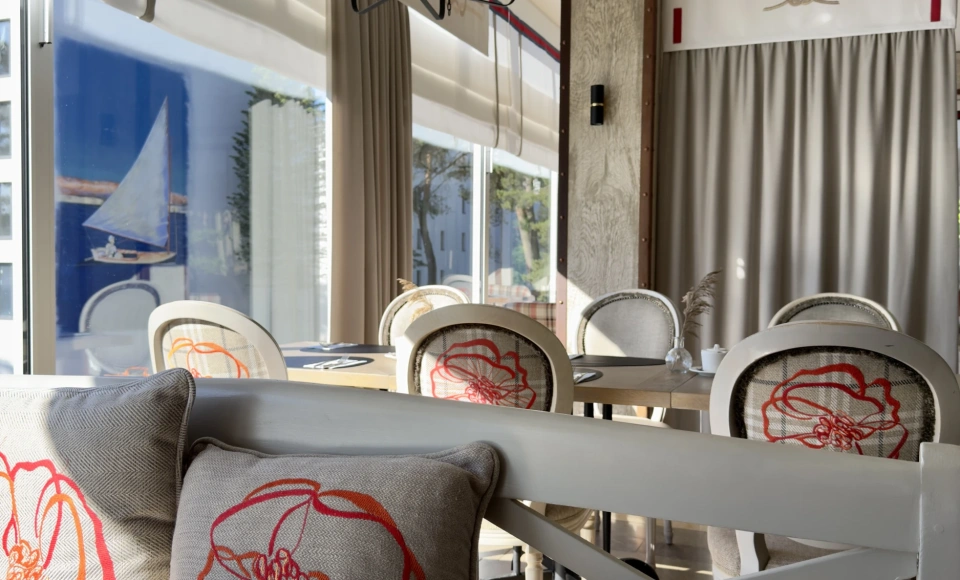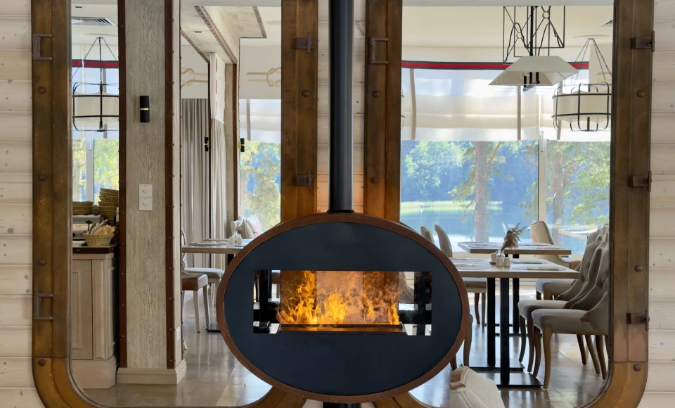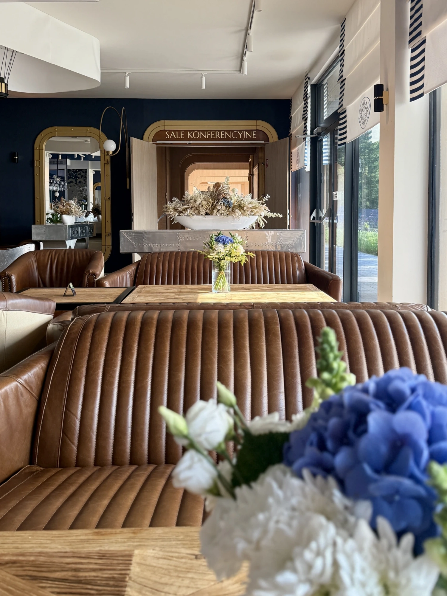 Przestronne wnętrze z panoramicznym widokiem na jezioro Pluszne oraz elegancki, a zarazem przytulny wystrój sprawiają, że każdy posiłek staje się niezapomnianym doświadczeniem.