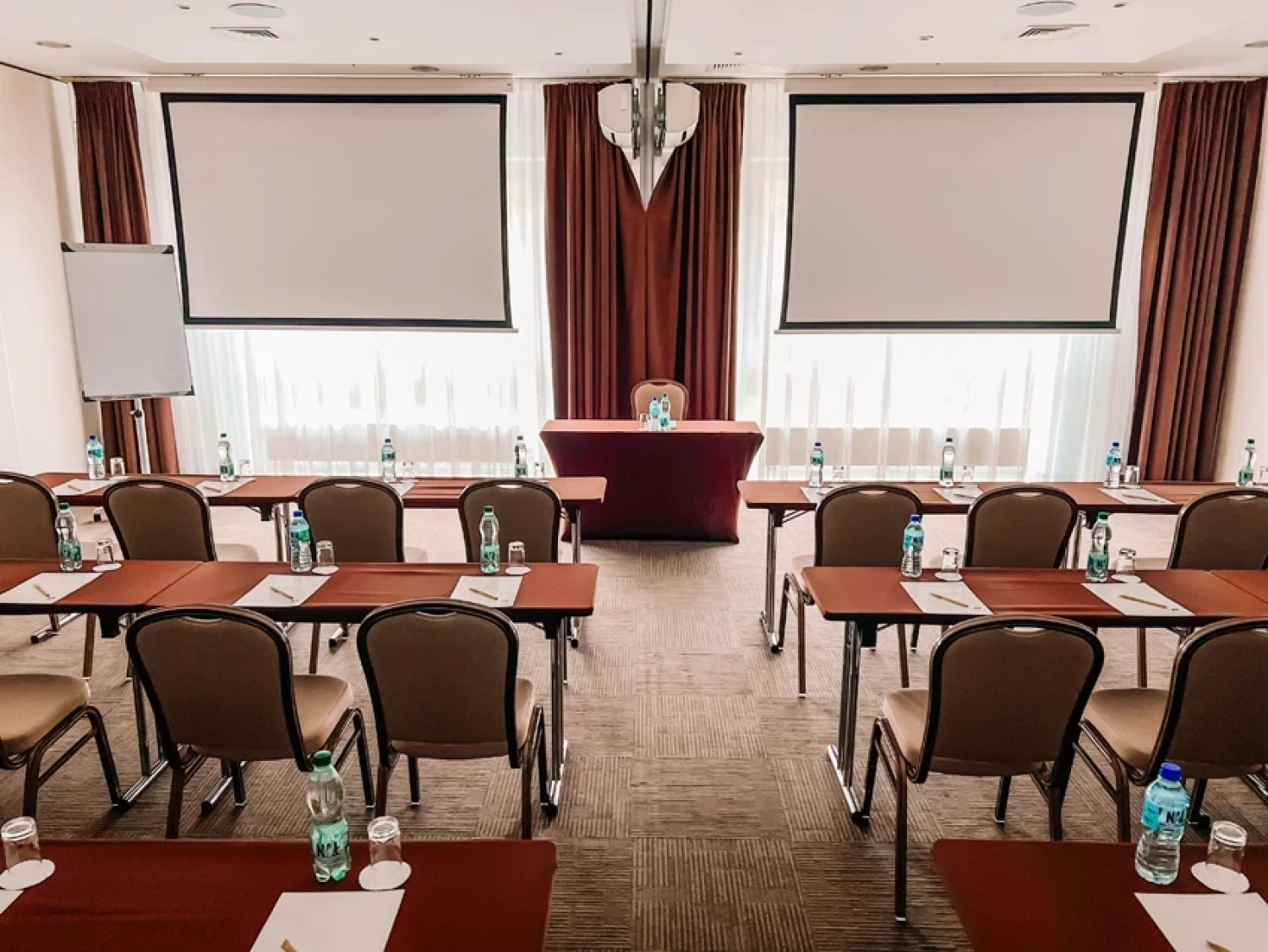 Do Państwa dyspozycji oddajemy 8 nowoczesnych sal konferencyjnych o łącznej powierzchni 640 m², które różnią się wielkością i ustawieniem. W zależności od aranżacji, mogą pomieścić od niewielkich grup do nawet 320 osób, co sprawia, że idealnie nadają się zarówno do kameralnych narad, jak i dużych konferencji czy wystawnych bankietów.