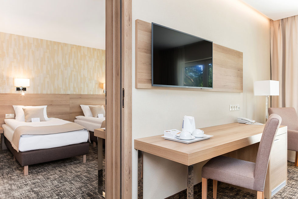 Do dyspozycji oddajemy przestrzenie o różnym standardzie: pokoje Standard, Premium, pokoje Lux z tarasami i widokiem na otaczający las oraz przestronne Apartamenty. Wszystkie zostały urządzone w gustownym, klasycznym stylu oraz wyposażone tak, by zaspokoić wszystkie potrzeby naszych gości.