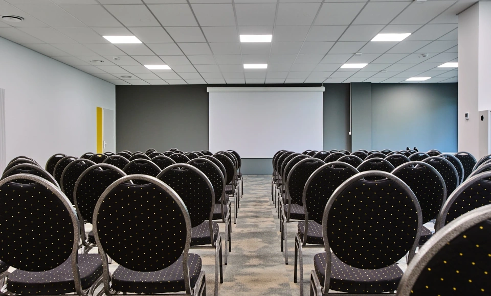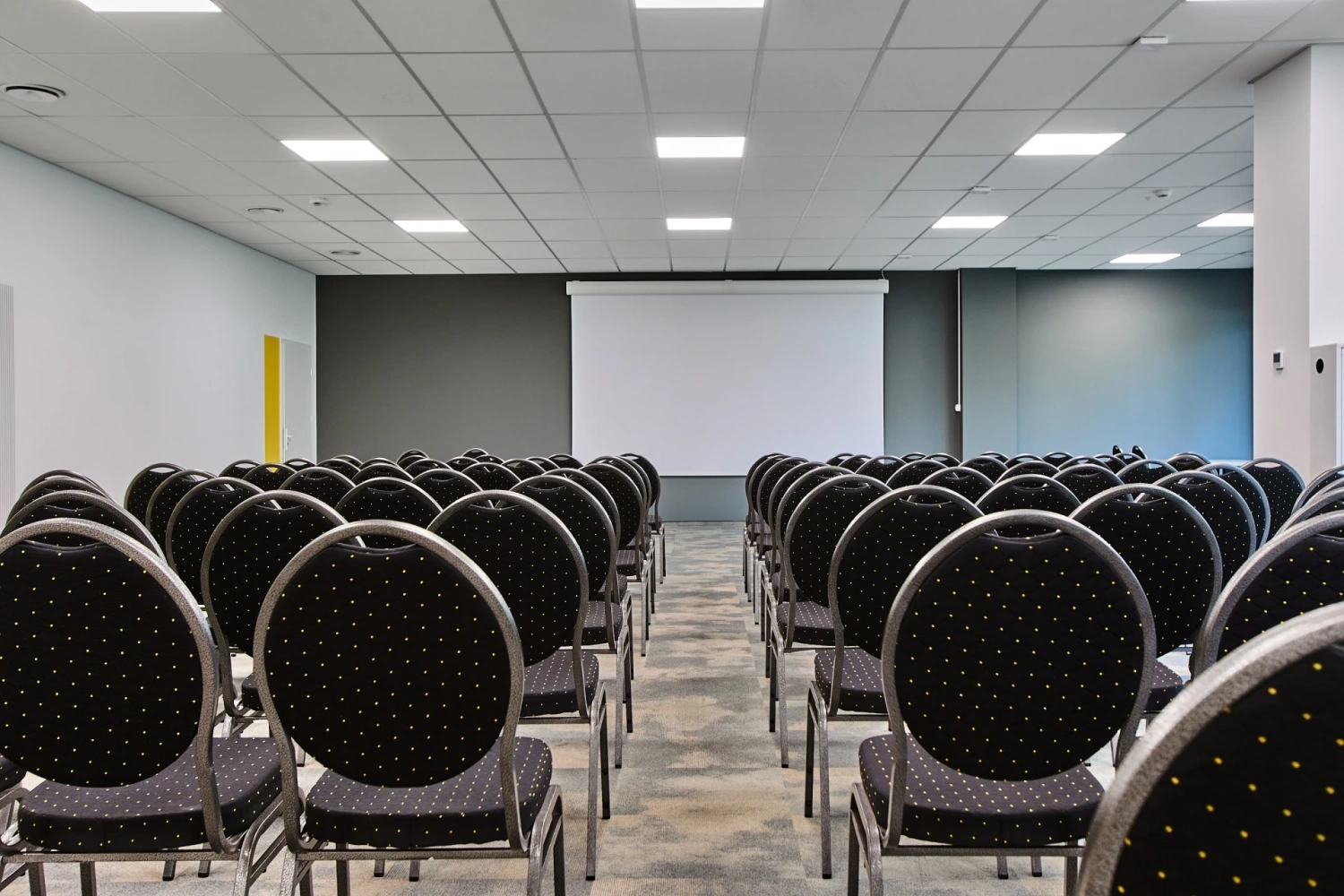 Do dyspozycji organizatorów oddano salę konferencyjną z możliwością elastycznej konfiguracji, pozwalającą na dostosowanie układu przestrzeni do specyfiki danego wydarzenia. Obiekt zapewnia profesjonalne nagłośnienie, nowoczesny sprzęt multimedialny oraz dostęp do światła dziennego, co znacząco podnosi komfort pracy i uczestnictwa w spotkaniach.