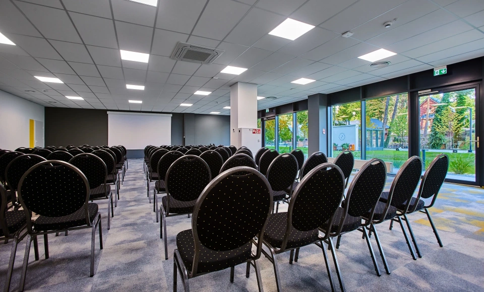 Dodaj opinięResort dysponuje nowoczesnym zapleczem konferencyjnym, w skład którego wchodzi sala konferencyjna z możliwością elastycznej aranżacji oraz dodatkowe przestrzenie wspierające wydarzenia. Łącznie obiekt jest w stanie pomieścić do 350 uczestników, co pozwala organizować zarówno kameralne spotkania biznesowe, jak i większe konferencje czy bankiety.