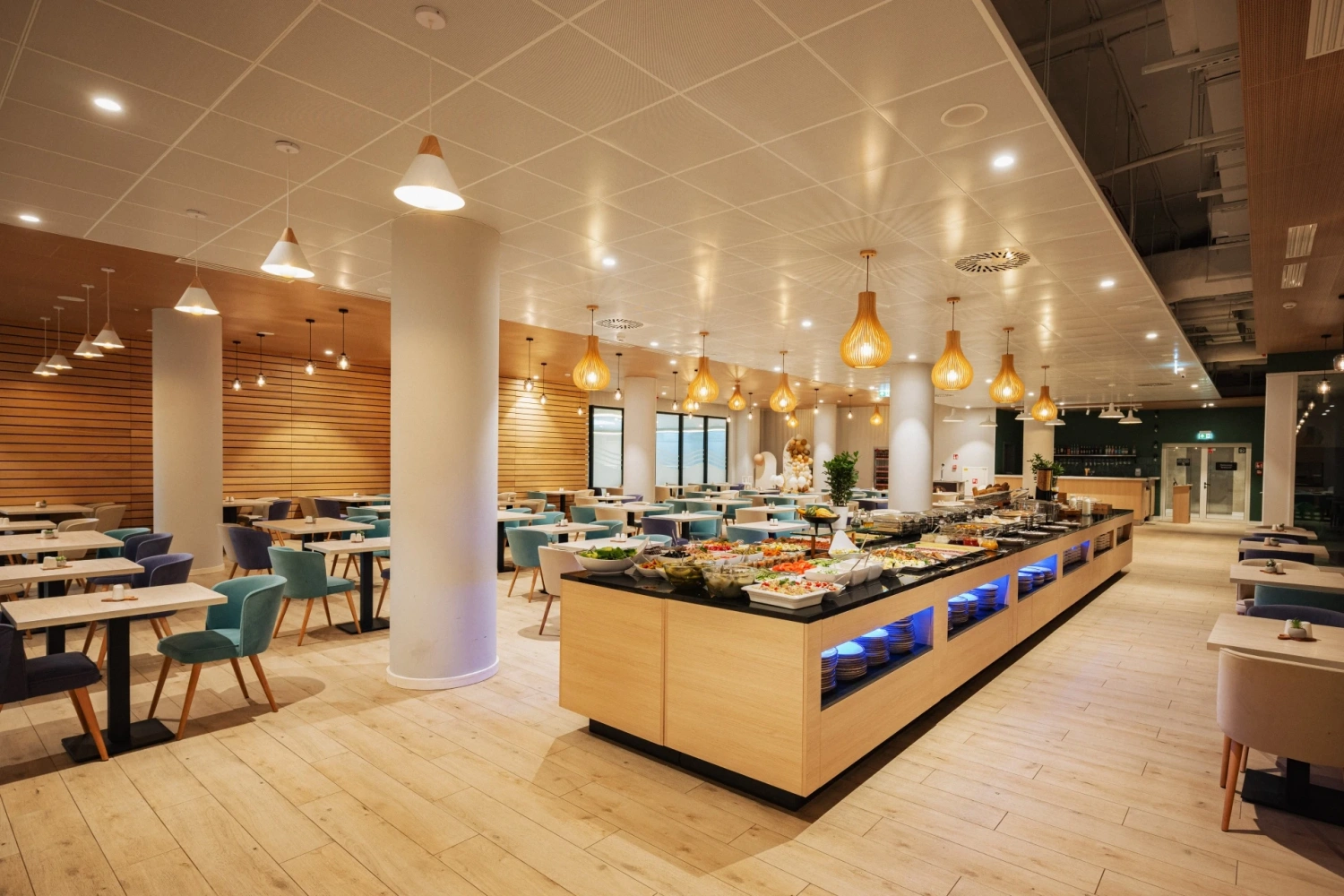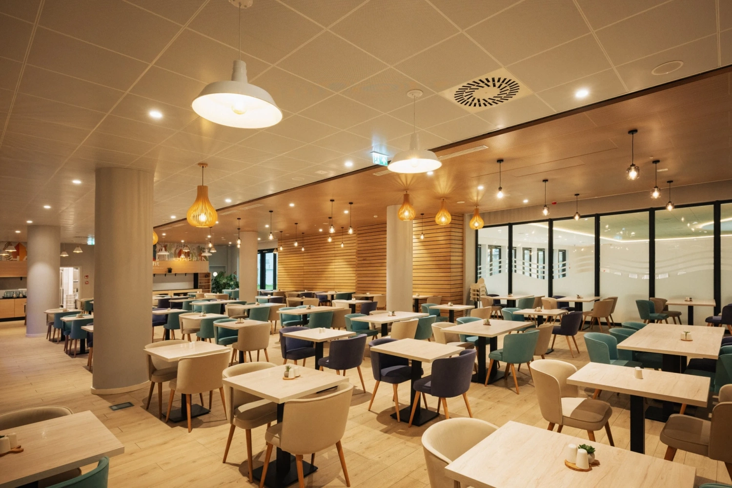Usytuowanie restauracji w bezpośrednim sąsiedztwie plaży oraz z wyjściem na ogród z tarasem zewnętrznym (czynny w sezonie letnim) zapewnia Gościom wyjątkowe doznania kulinarne w kontakcie z naturą. Dodatkowo, przeszklona sala zabaw przy restauracji umożliwia komfortowy wypoczynek rodzinom z dziećmi, pozwalając najmłodszym na bezpieczną zabawę w czasie posiłku. Restauracja stanowi idealne miejsce na codzienne posiłki, kameralne spotkania oraz specjalne okazje, łącząc smak, estetykę i wygodę.