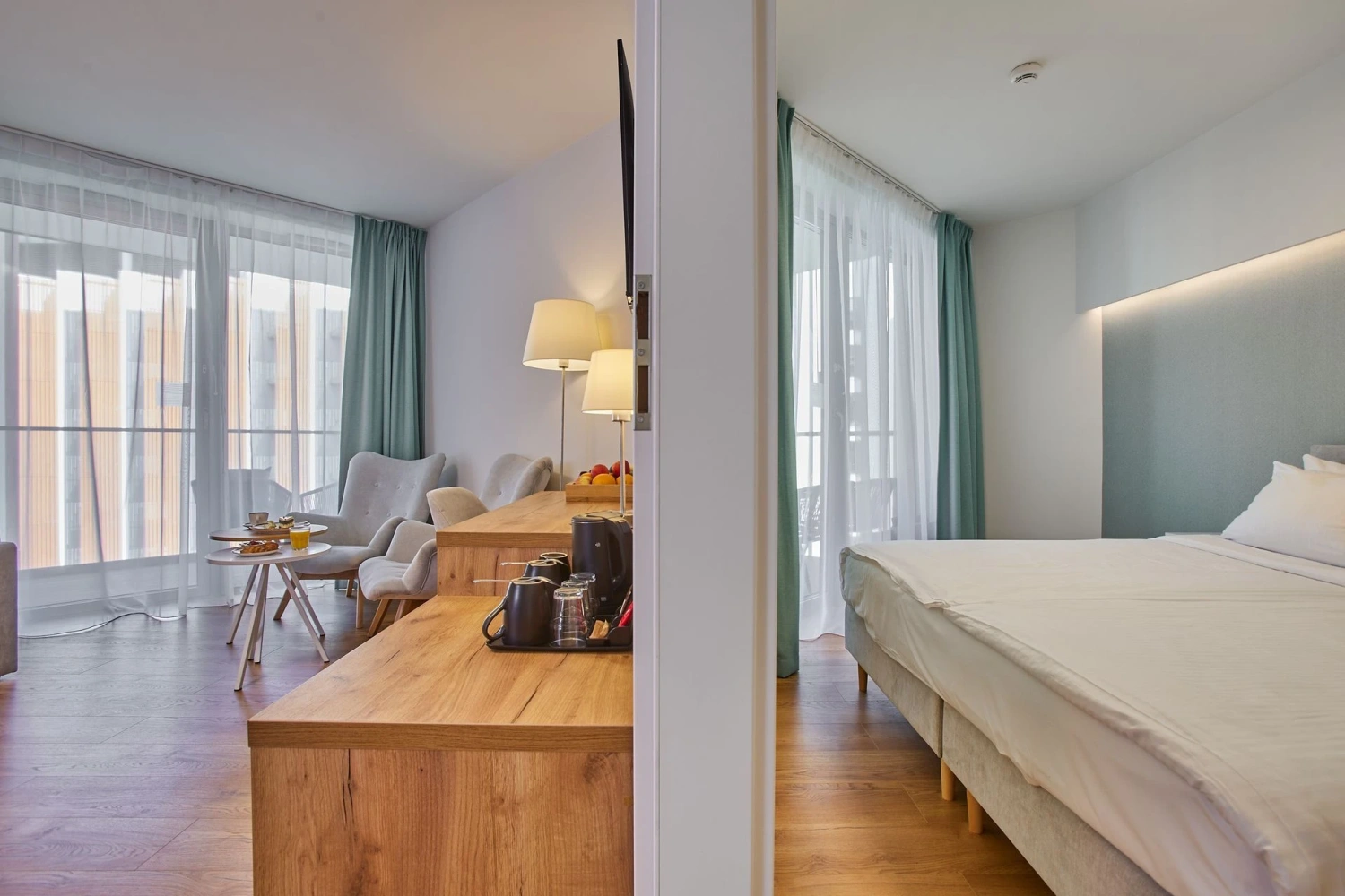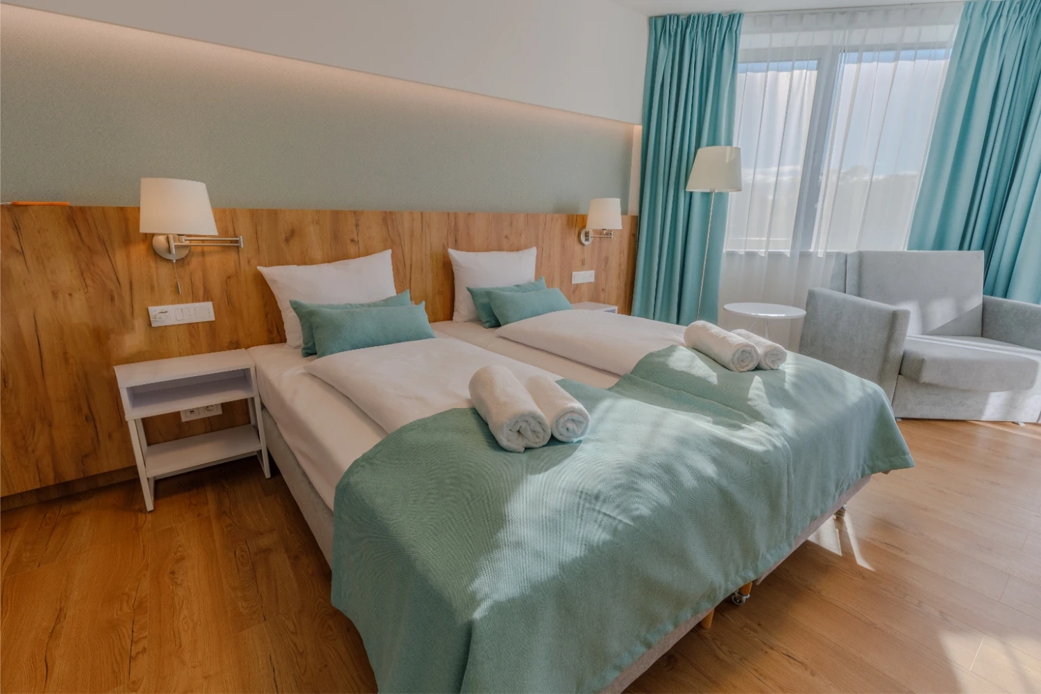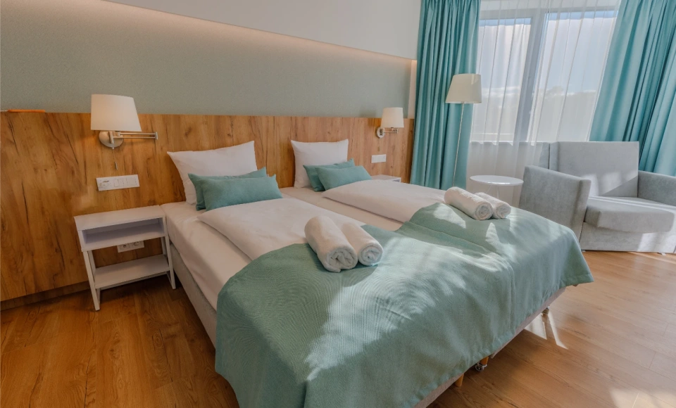 Baza noclegowa PINEA Resort Pobierowo obejmuje 161 elegancko zaprojektowanych pokoi zlokalizowanych w części hotelowej oraz 175 apartamentów w części apartamentowej, tworząc zróżnicowaną ofertę dopasowaną do potrzeb gości indywidualnych, rodzin oraz uczestników wydarzeń biznesowych. Każda z przestrzeni została zaprojektowana z dbałością o funkcjonalność, estetykę i komfort użytkowania.
