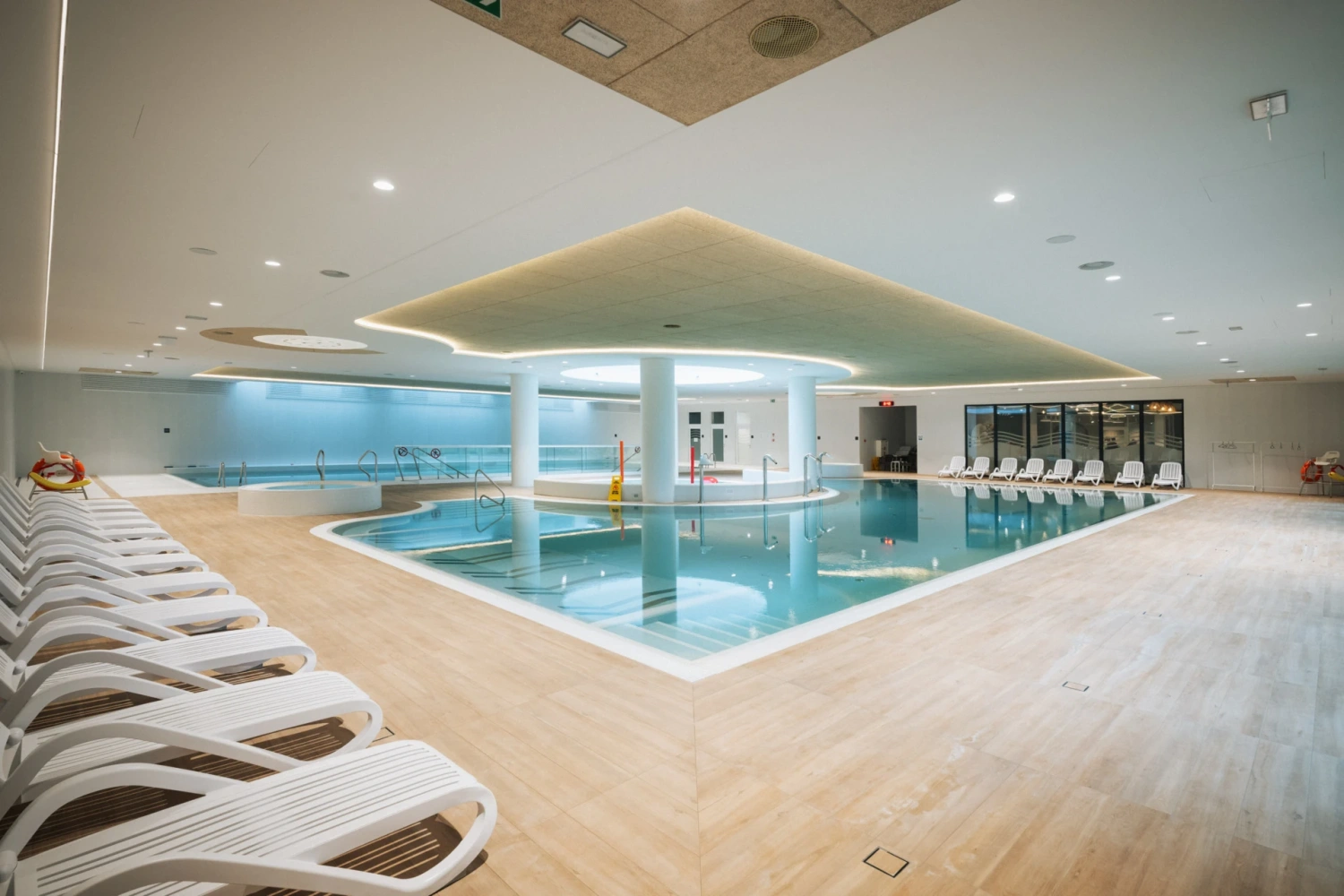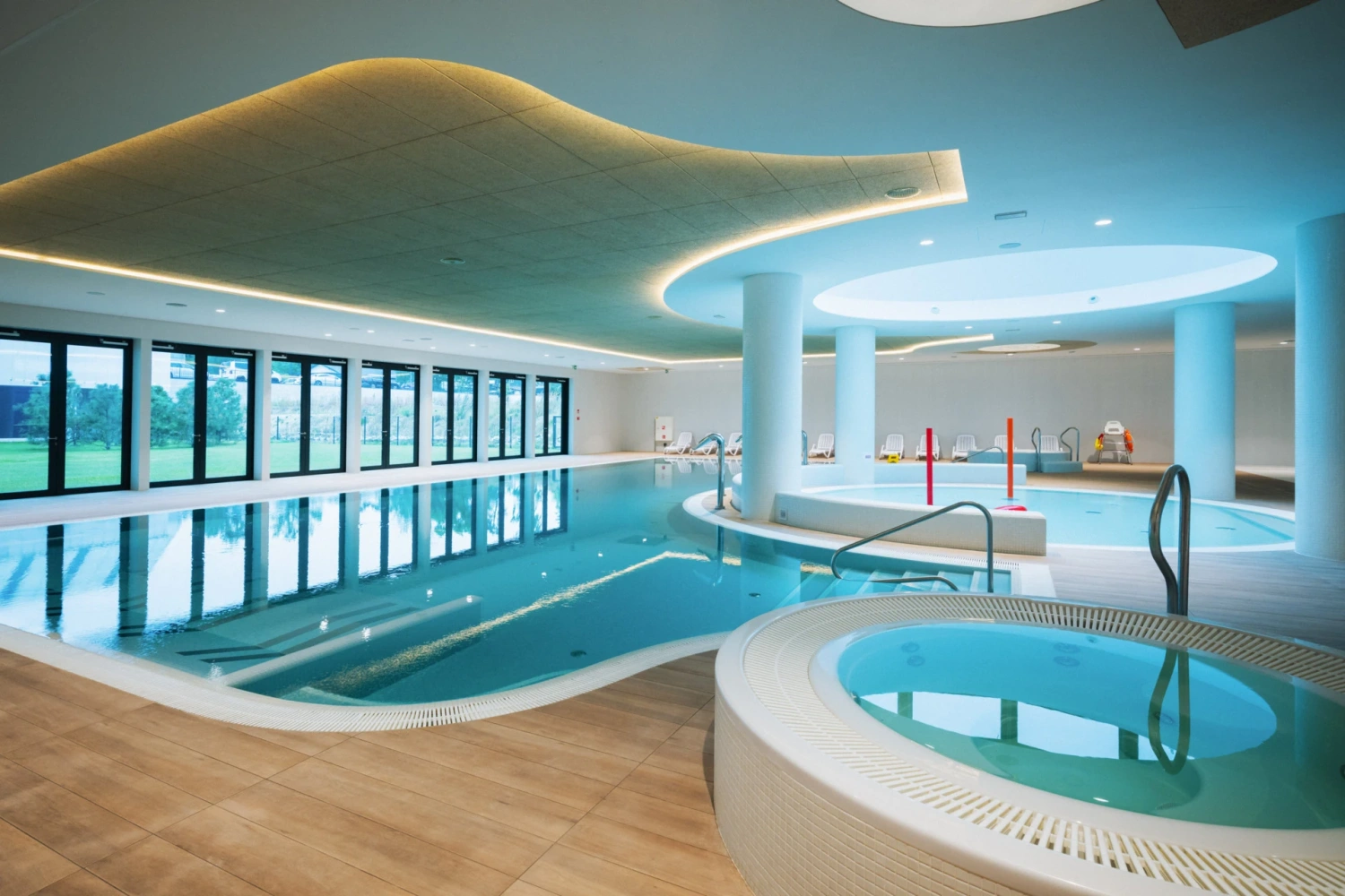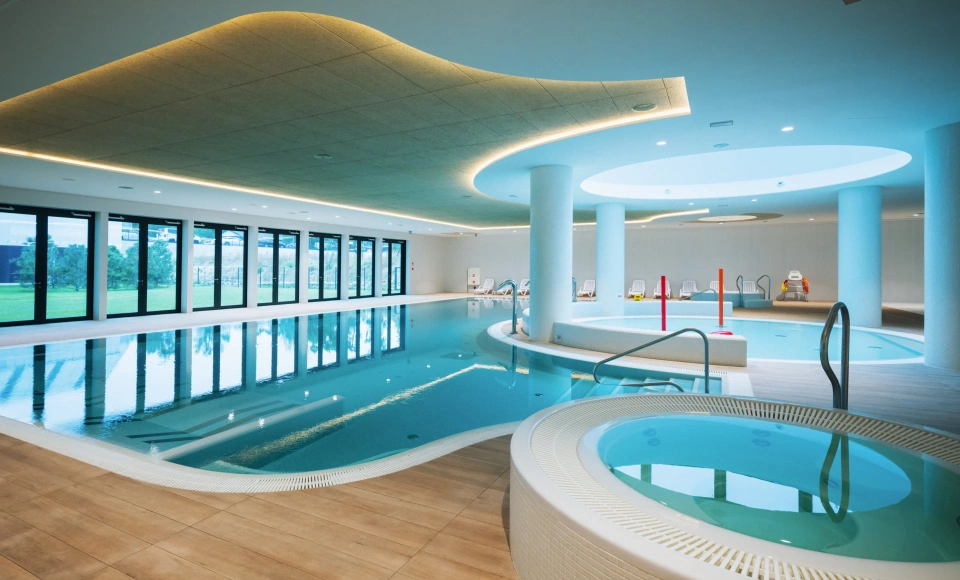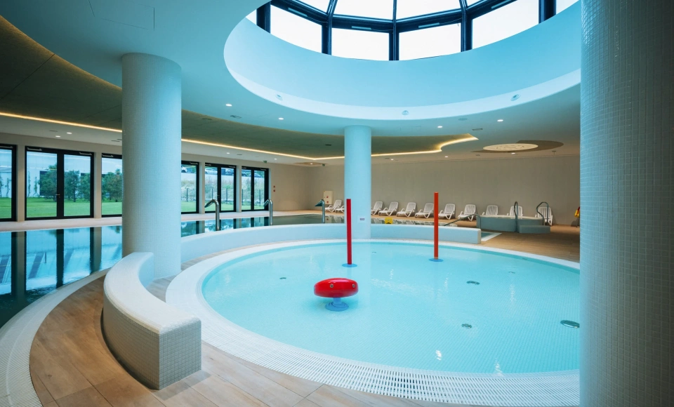 Do dyspozycji Gości oddajemy pełnowymiarowy basen pływacki o głębokości 2 m, basen rekreacyjny z widokiem na nadmorską zieleń oraz bezpieczny brodzik dla dzieci. Całość uzupełnia strefa jacuzzi, zapewniająca relaks i odprężenie w komfortowych warunkach. Strefa wellness obejmuje zespół saun i łaźni, w tym saunę fińską, parową oraz aromatyczną, sprzyjających regeneracji organizmu, wyciszeniu i odzyskaniu równowagi. To doskonałe uzupełnienie pobytu zarówno dla uczestników wydarzeń biznesowych, jak i gości indywidualnych.