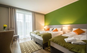 Uzdrowisko posiada szeroki wachlarz usług hotelowych. Dysponuje 300 miejscami noclegowymi. Do wyboru jest 140 pokoi 1-, 2- i 3- osobowych. Każdy z nich posiada własną, przestronną łazienkę. Goście mają do dyspozycji pakiet ręczników, kosmetyków oraz dostęp do suszarki do włosów. W łazienkach znajdują się przeszklone kabiny prysznicowe i nowoczesny sprzęt sanitarny. W całym hotelu funkcjonuje dostęp do szybkiego, bezprzewodowego internetu.