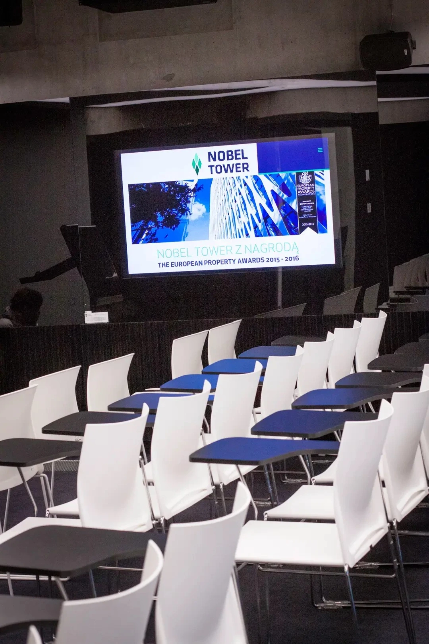 NOBEL TOWER w Poznaniu to bardzo nowoczesny i jednocześnie przytulny obiekt konferencyjny, który użyczył nam swoich sal konferencyjnych już kilkukrotnie i zawsze byliśmy bardzo zadowoleni. Jest bardzo dobrze położony, na ul. Dąbrowskiego i łatwo tu dojechać zarówno samochodem, jak i miejską komunikacją. Sala konferencyjna jest wyposażona w nowoczesny sprzęt multimedialny, doskonale nagłośniona, z dużą ilością dziennego światła oraz szybkim internetem.