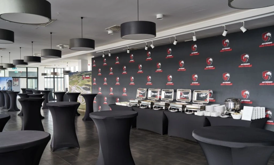 Cały obiekt oferuje modułową przestrzeń, którą można elastycznie dopasować do potrzeb wydarzenia – od kameralnych warsztatów po kilkusetosobowe eventy z programem motoryzacyjnym.