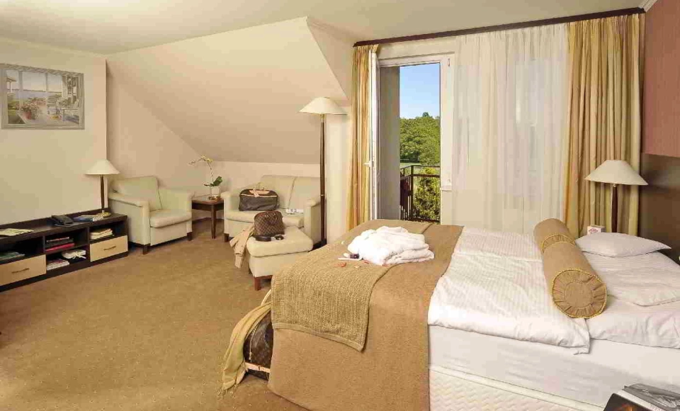 Goście mogą korzystać z rozbudowanej strefy relaksu: basenu krytego, jacuzzi, saun (sucha, parowa i infra-red) oraz strefy SPA i MEDICAL, oferującej profesjonalne zabiegi i terapie. Miłośnicy aktywnego wypoczynku docenią dostępne trasy rowerowe w okolicy oraz kompleksową infrastrukturę rowerową w obiekcie, w tym wypożyczalnię, monitorowaną przechowalnię, stanowiska serwisowe i do ładowania rowerów elektrycznych.