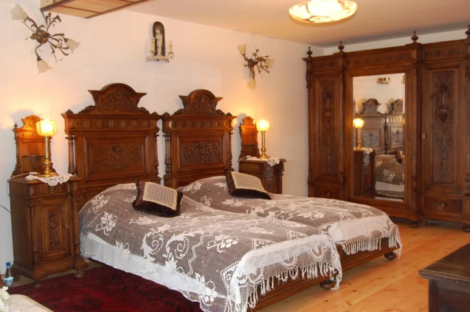 Każdy z pokojów został wyposażony w najwyższej jakości meble, które nawiązują do tradycji polskiej oraz zabytkowego charakteru obiektu. Eleganckie łazienki, stylowe dodatki oraz ręcznie wykonane zdobienia tworzą niepowtarzalny klimat. Dodatkowo wygodne łóżka, przestronne wnętrza oraz pełne wyposażenie pozwalają na pełen komfort i relaks podczas pobytu.