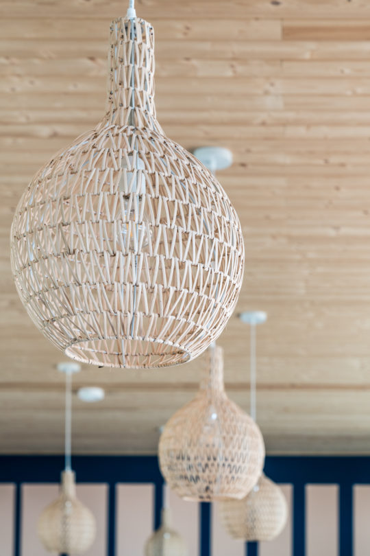 Cały budynek to nowoczesna, geometryczna bryła zbudowana z drewna. Charakterystycznym elementem są wysokie, otwarte witryny, przez które można nie tylko podziwiać malownicze krajobrazy, ale również skorzystać ze wspaniałego światła naturalnego. Niesamowite nadmorskie otoczenie wkrada się przez nie do środka.