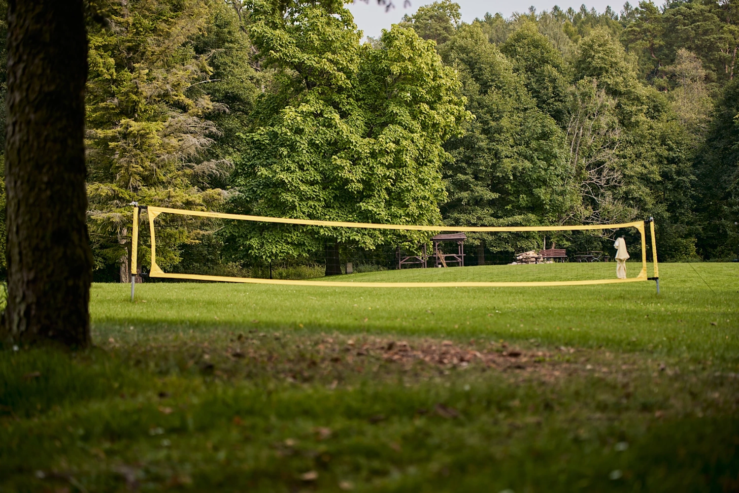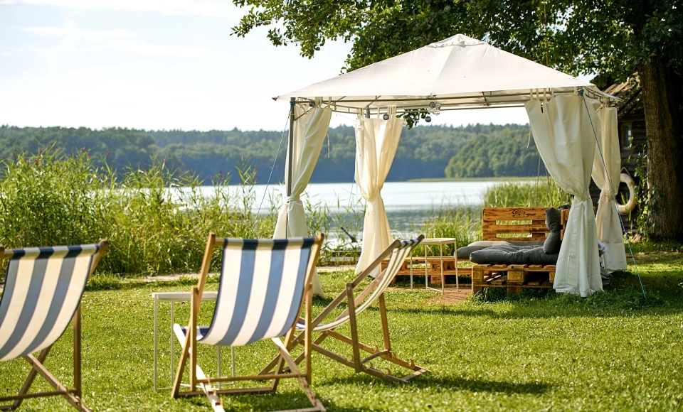 Goście mogą również skorzystać z sezonowego tarasu z widokiem na zakole Łyny oraz polanę, gdzie organizowane są spotkania przy ognisku i grillu. Kameralna atmosfera i profesjonalna obsługa dopełniają wyjątkowy charakter tego miejsca.