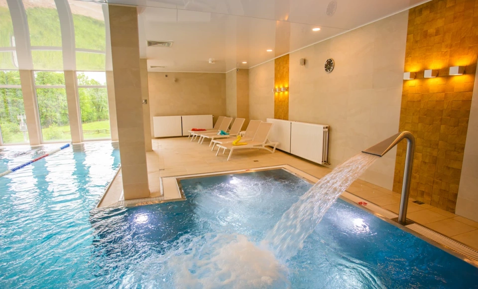 Hotel dysponuje także dużym lobby barem z kącikiem zabaw dla dzieci oraz własną Strefą Spa & Wellness. Oferta umożliwia korzystanie z basenu rekreacyjnego z biczami wodnymi oraz jacuzzi.