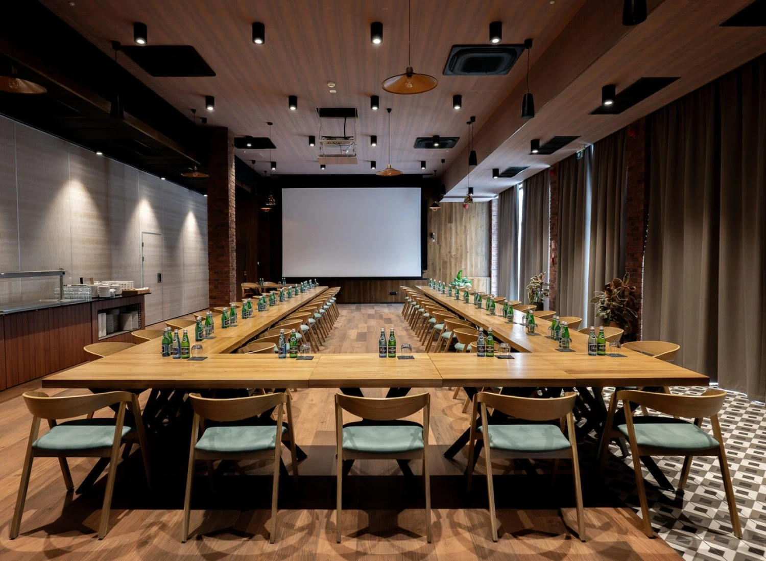 Obiekt oferuje doskonałe zaplecze konferencyjno-eventowe, obejmujące dwie nowoczesne sale dostosowane do organizacji różnorodnych wydarzeń.W zależności od układu, sale będą umożliwiały organizację wydarzeń - w układzie teatralnym do 600 osób, w układzie szkolnym do 390 osób, w układzie bankietowym do 466 osób, oraz w układzie podkowy do 380 osób.