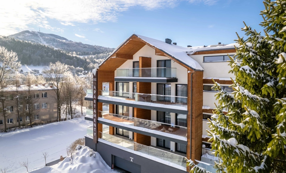 Novy Szczyrk Aparthotel wyróżnia się kameralnym charakterem i wysokim standardem, dzięki czemu doskonale odpowiada na potrzeby osób poszukujących zarówno krótkiego wypoczynku, jak i dłuższego pobytu w górach. Obiekt oferuje eleganckie apartamenty urządzone z dbałością o komfort i estetykę, w których dominują nowoczesne rozwiązania zestawione z ciepłymi akcentami sprzyjającymi relaksowi. Każdy apartament posiada prywatną przestrzeń zewnętrzną, umożliwiającą podziwianie malowniczych widoków Beskidów w spokojnej atmosferze.