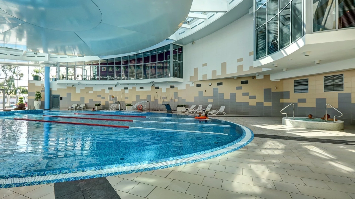 Przez cały rok korzystać można z basenu wewnętrznego podzielonego na część z torami do pływania oraz część przeznaczoną do aktywności i zabaw wodnych. W sezonie letnim gościom udostępniony zostaje basen zewnętrzny, wokół którego rozstawione są leżaki do kąpieli słonecznych.